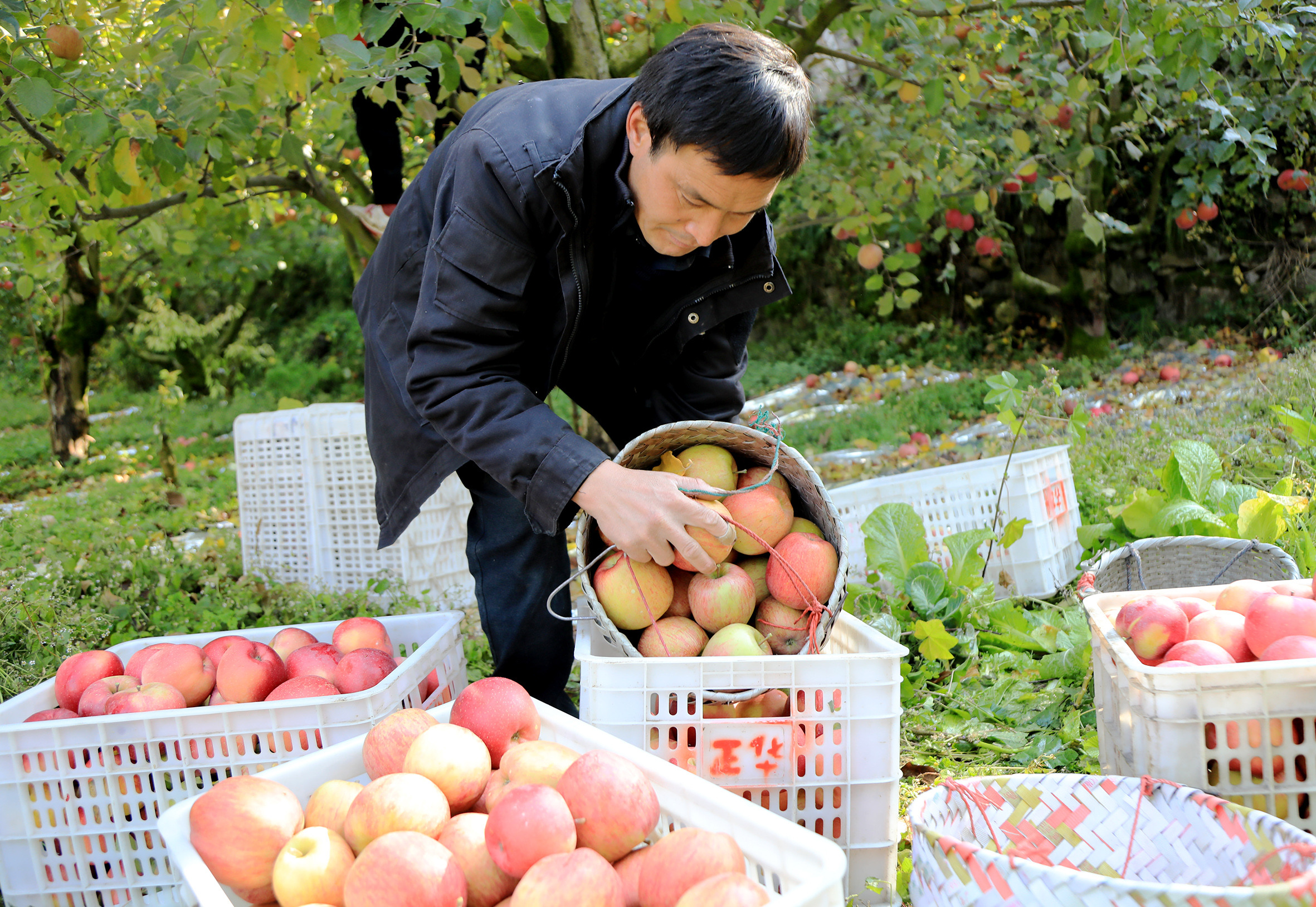 走进果园,种植户蔡正华夫妇正和几位亲友忙着采摘、分练、装箱。“2016年在县科农局专家的建议下,家里面的6亩地改种了现在的‘冰糖心苹果’,今年苹果产量在5万斤左右,预计能收入20余万元。”蔡正华说道。
