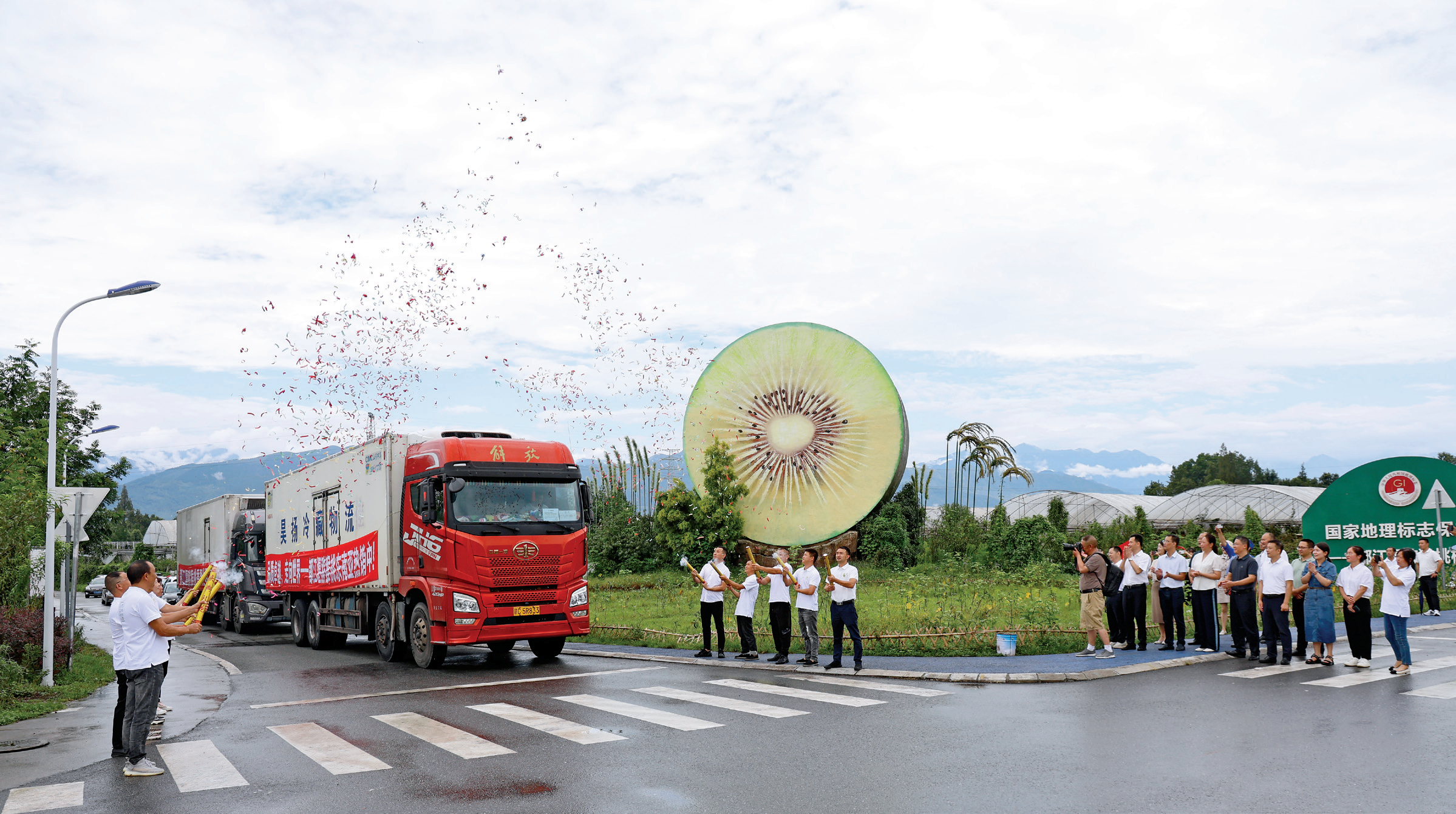 都江堰市第十二届金秋猕猴桃采摘节启动猕猴桃出口泰国发车仪式。