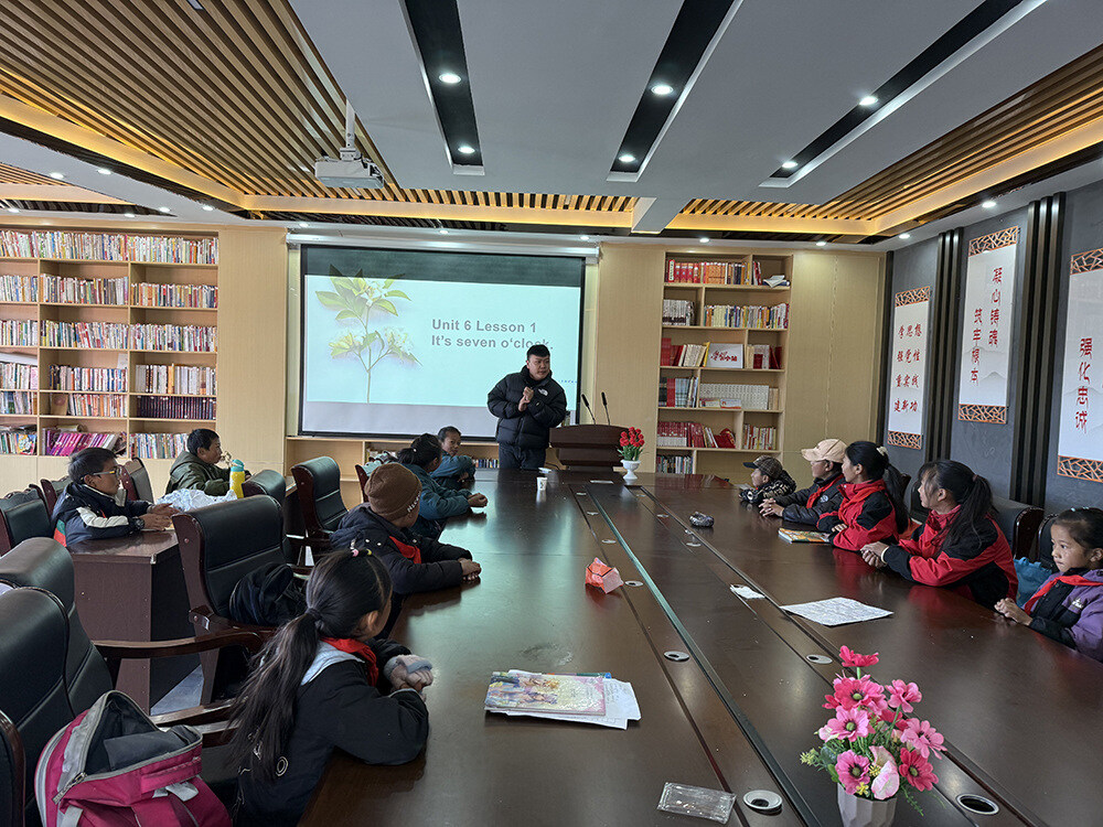 同时,我还利用学生月假,在村活动室为他们进行学业辅导,开展趣味英语、爱国主义教育、读书绘画等课程。第一次上课时,因为海拔太高,我稍微讲几句话,就会喘口大气。此时孩子们就很贴心地让我坐下来,并在接下来的课上认真配合,积极主动回答每个问题,这让我很欣慰也很感动。