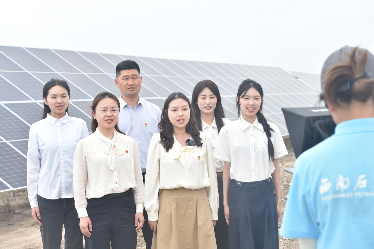 在老师们的指导下,地质学2021级、继续在西南石油大学深造的准研究生杨川榆与其他实践队员们扛起摄像机,穿梭于玉门的油田井架之间,行走在戈壁光伏矩阵之中,用镜头捕捉这片土地上的奋斗故事和发展脉动。“虽然我们的拍摄技术可能稍显稚嫩,但镜头里饱含的真挚情感和青春视角,或许才是最打动人心的力量。”杨川榆这样诠释着拍摄团队的创作理念。