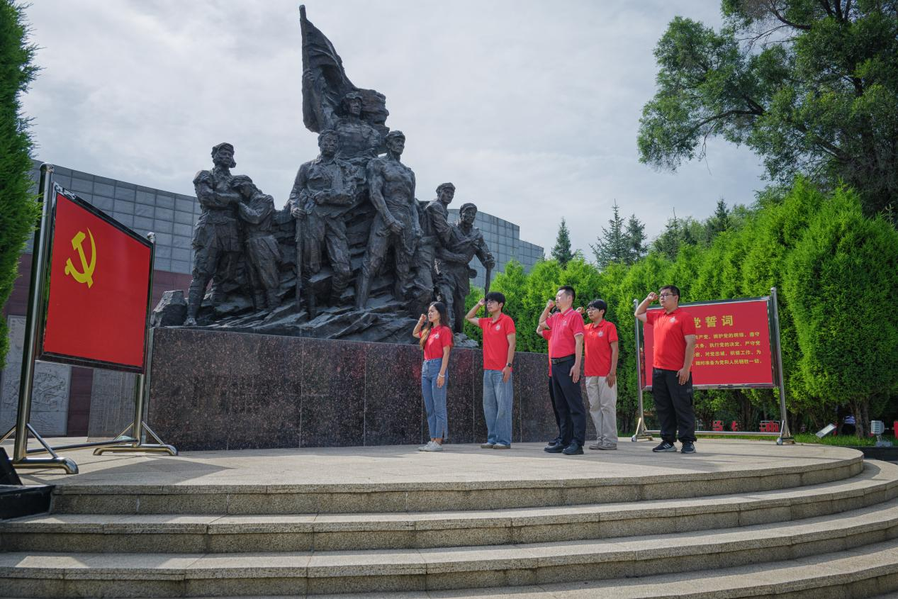 实践队全体成员在中国工农红军西路军纪念馆前重温入党誓词