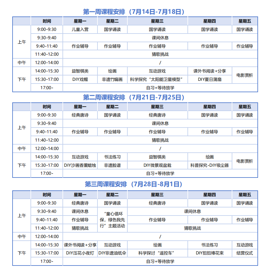 系统设计,构建“七色童梦”课程体系。课程设置注重基础巩固与能力拓展相结合,传统文化与现代生活相融合,确保满足孩子们不同成长维度的需求。“赤”诚之心(国学诵读),组织孩子们每天早上9:00—9:30诵读弟子规、三字经、古诗等经典,感悟家国情怀,传承文化根脉;“橙”风破浪(团队互动),开展趣味协作游戏,让孩子们在汗水中学会沟通、信任与合作,培养团队意识;“金”石筑基(课业辅导),提供语数等学科专业辅导,帮助孩子们夯实学业基础,铺就坚实路基;“绿”意盎然(环保DIY),利用废旧材料进行创意制作,巧手变废为宝,将绿色环保理念深植童心;“青”韵流芳(非遗体验),体验剪纸、川剧脸谱、油纸伞、竹编画等非遗传统技艺的魅力,增强文化认同;“蓝”图绘梦(绘画手工),动手自制扭扭棒花束、香囊、蜡烛等,充分激发孩子们的想象力与创造力;“紫”气东来(益智棋类),开展五子棋、跳棋等棋类活动,锻炼孩子们的逻辑思维与策略能力。