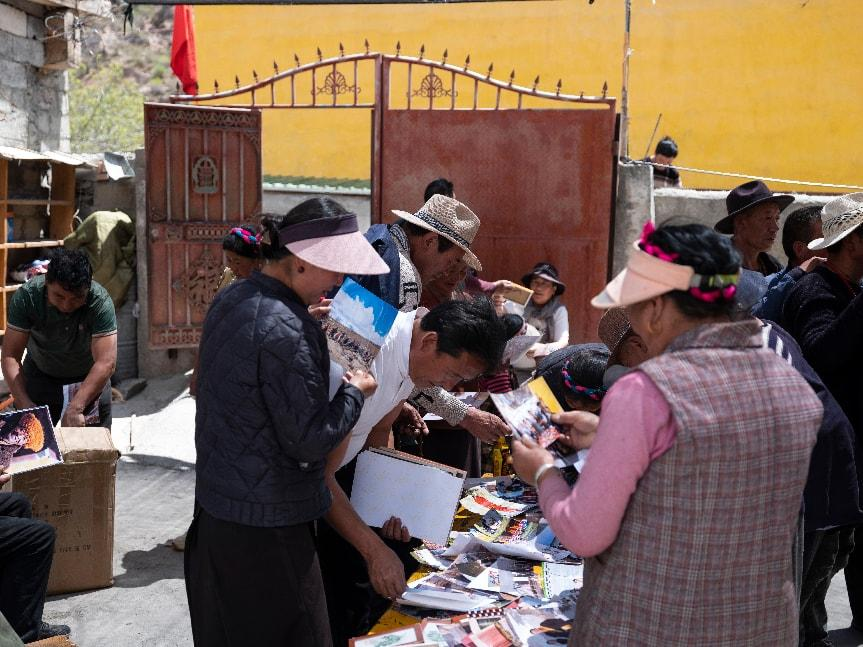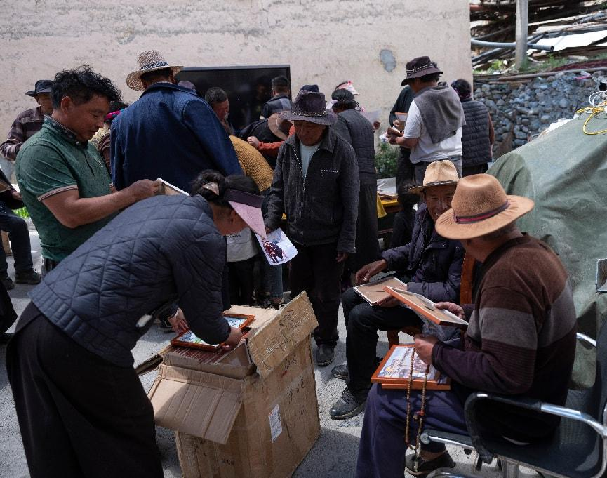 2024年照相馆升级为“民意乐凤凰文化站”,成了雪域高原的“文化大篷车”。在海拔4600米的虫草山,播放影片《我和我的祖国》。当旋律响起,采挖虫草的牧民们自发打开头灯,千百束光束在黑夜汇成星海。文化大篷车为自驾游客拍骑行纪念照,2024年直播帮助村民对外销售22万元的土豆和荞麦。