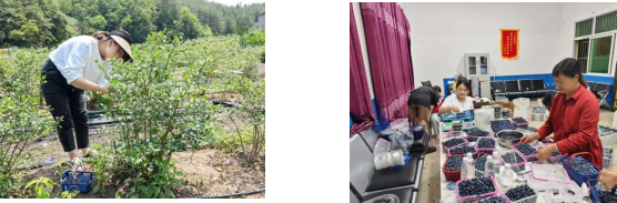 目前,正处于蓝莓采摘售卖的旺季,我每天都去地里采摘、挑选、打包蓝莓等。在蓝莓地里,看到的是阳光下村民的笑容,听到的是“杨书记,今年搞蓝莓是对的,现在市场价格还可以,只要有人买,我们天天来摘都要得”的声音。经统计,目前售卖蓝莓已收入3万余元,为20户村民提供了“在家就业”岗位,每户村民增收1200元左右,村集体经济也实现了从无到有再到优的质效双增。
