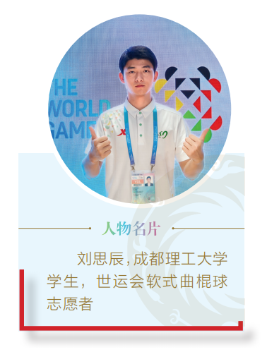 在刘思辰看来,赛场上的哨声、欢呼声、球鞋摩擦地面的声音交织成的“交响曲”,让他真切感受到了“这项运动的生命力”。“在赛场边,我见证了中国队24号运动员唐致良在对阵加拿大队时,赢得世运会软式曲棍球项目的首粒进球,这让我更深刻地读懂了体育精神。”刘思辰说。