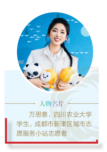 “大运会时,我学会了如何更耐心地与人沟通,也明白了志愿服务不仅仅是回答问题,更是传递一座城市的温度。”万思意说。为了这次世运会,她和同伴们提前做足了功课,熟记比赛项目规则,就为了让市民能更直观地了解赛事,她说:“能为成都‘赛事名城’这个名片出点力,我觉得挺有意义的。”