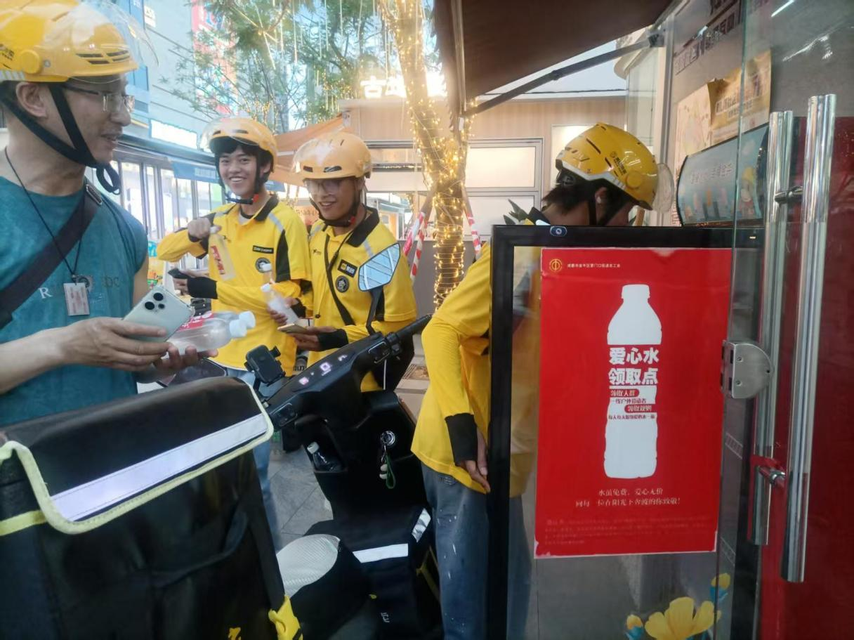“大热天跑单,能喝上一口冰水真是爽!”外卖员孙晨擦了把汗,拧开冰镇矿泉水猛灌几口,“以前只能自己带水,不到中午就变温水了。现在这儿随时能续上冰水,还能给手机充个电,歇个脚,感觉整个人都活过来了!”正在花照壁社区红房子党群服务站休息的外卖骑手激动地分享道。针对近期持续的高温天气,成都市金牛区营门口街道花照壁社区红房子党群服务站“骑手能量补给站”,免费提供饮水歇脚、手机充电、图书阅读、应急药品等贴心服务,为新就业形态劳动者打造一个温馨的“高温避风港”。