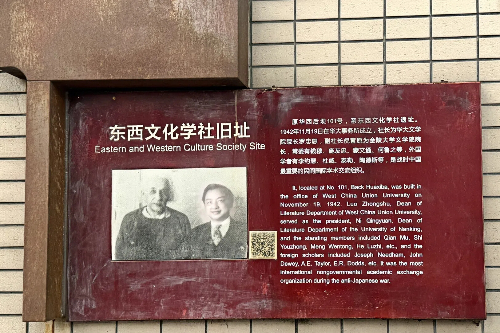 东西文化学社常于华西坝宁静雅致的图书馆或华西后坝101号举办文化交流、学术演讲活动。李约瑟等外国学者先后登台,与陈寅恪、钱穆等中国学者围桌论道。