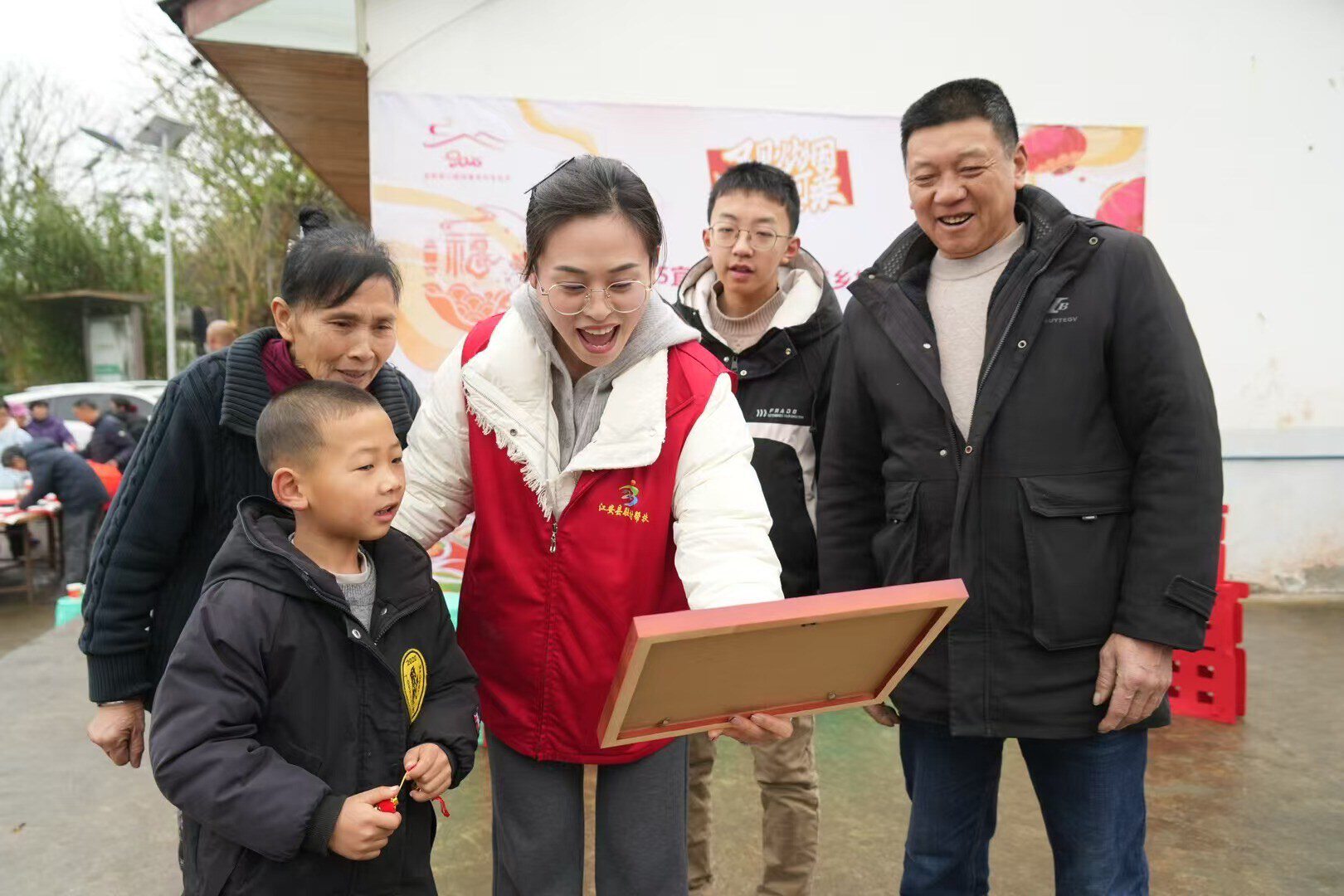 春节的暖意临近时,我们驻村工作队策划了“送福万家、定格幸福时刻”迎新活动。联系来的摄影家协会成员,成了村里最受欢迎的客人,我举着反光板当起了助理。拍摄那天,冬日难得的暖阳洒在村中的空地上。乡亲们早早换上了最鲜亮的衣裳,扶老携幼,笑意盈盈。当镜头聚焦在98岁老党员王奶奶一家时,我被深深震撼了:老人家身着簇新的红呢大衣,胸前一枚虽已褪色却擦得锃亮的党徽熠熠生辉,银发梳得一丝不乱。她身后,是五世同堂的热闹场景!王奶奶紧紧拉住我的手,声音微颤:“小彭书记啊,托你的福!要不是有这次活动,我这把老骨头,哪能把天南地北的孩子们都聚到一块儿,拍上这么一张大团圆哟……” 快门按下的瞬间,不仅定格了血脉相连的温情,更在我心中坚定:乡村振兴,需要这样“润物细无声”的暖流,去滋养那些因分离而干涸的心田,让“家”的圆满触手可及。