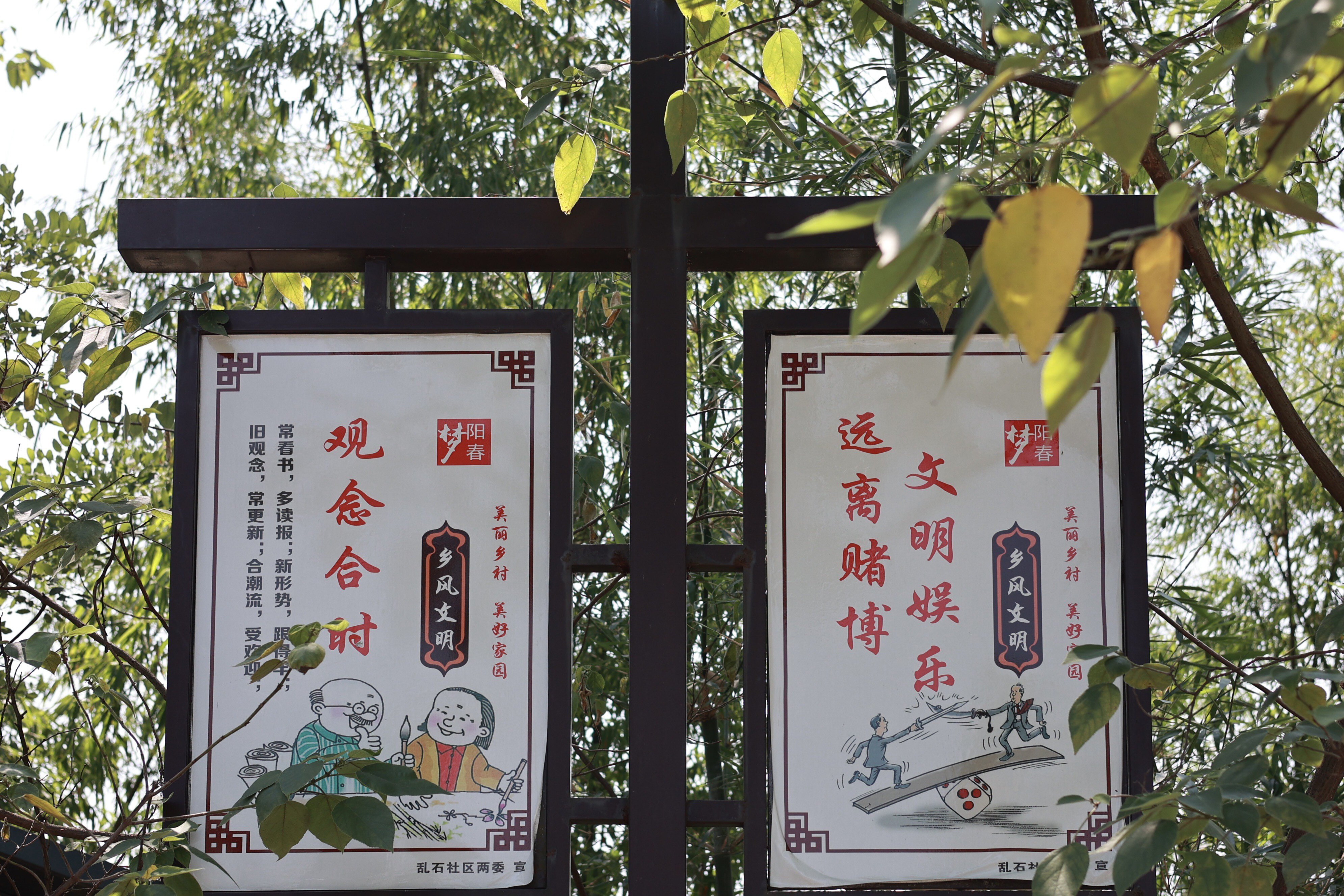 推动精神富足,目光所及皆是文章。村里的公益广告牌,经年累月,字迹模糊,画面斑驳,指示路标也残破不清。这不仅拉低了村容“颜值”,更让积极向上的文化气息无处安放。更新这些“门面”,成了我们工作队刻不容缓的事情。