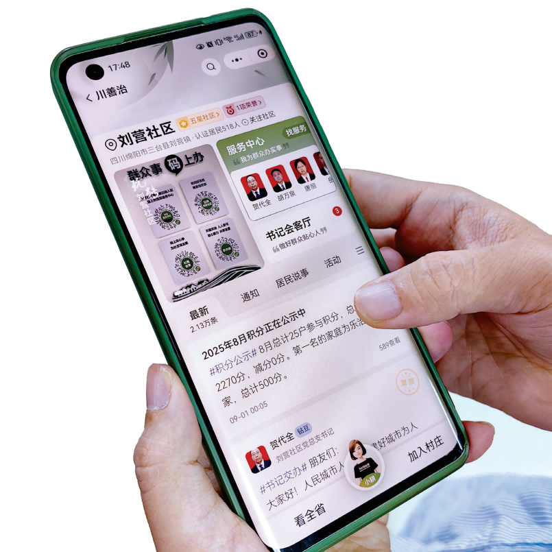 村民口中,“方便”是被提及最多的词。“现在好多事不用专门往村里跑,动动手指就能办。”泸州市江阳区分水岭镇董允坝村村民余洪梅一边说一边打开手机上的“川善治”向记者展示,“我前两天刚反馈路灯使用问题,今天就有专人来办理。”刘营社区居民蒋红兵也表示,通过小程序,能随时了解社区干部的工作动态,“再也不用担心找不到人”。