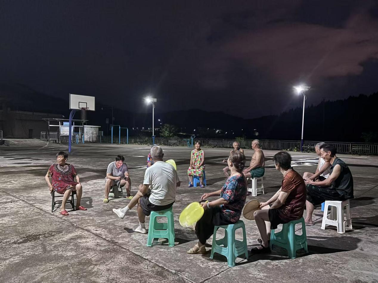 19:53分,亮了!当明亮的灯光唤醒广场的夜晚,孩子们在光晕中追逐嬉闹,村民们自信地展现着各自的“舞林”风采。村民吴老汉说:“多少年了,晚上出门都得摸黑,如今这灯照的路清亮,心里也透亮!”——摘自驻村日志