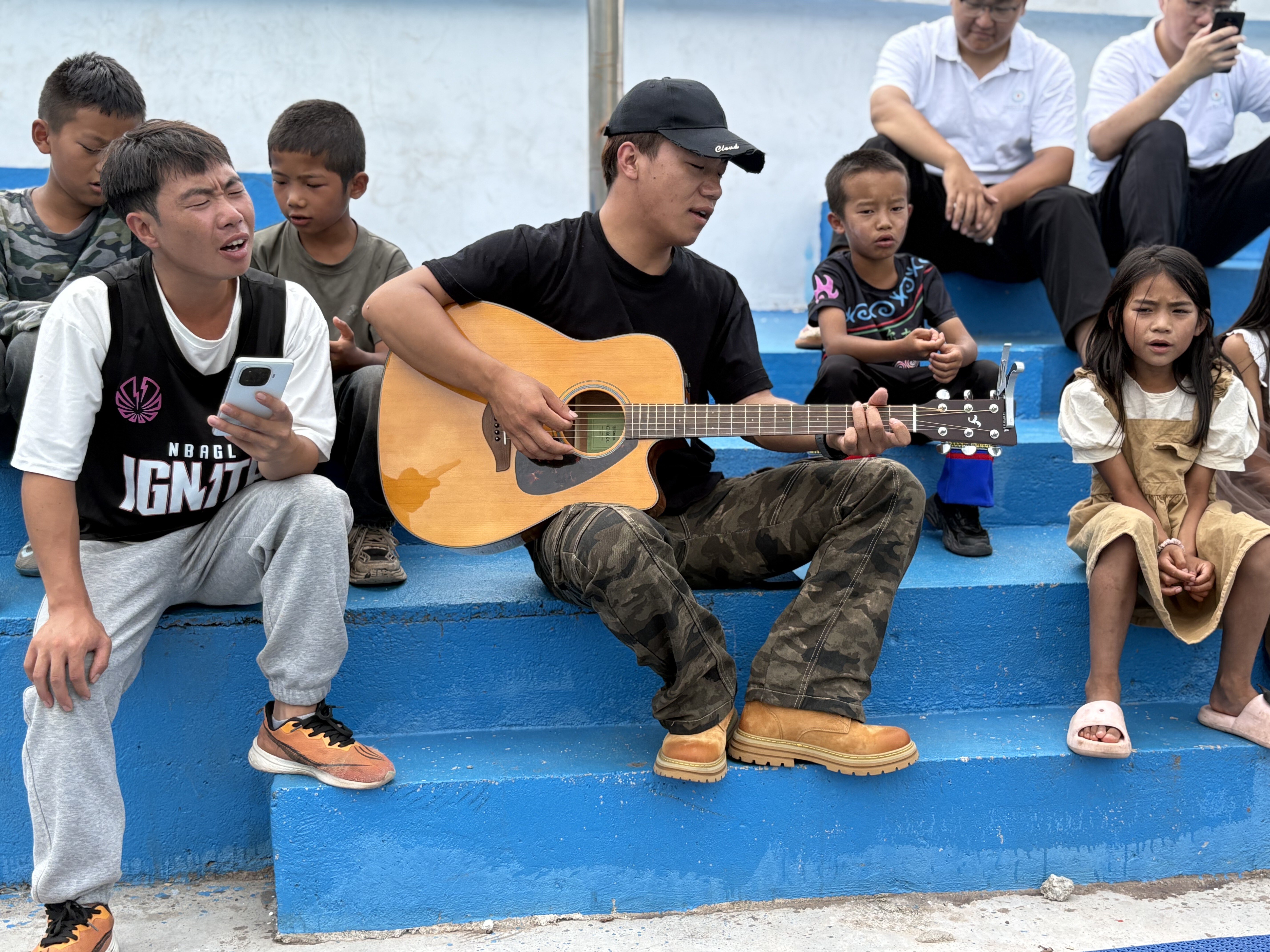尔吉村云端大学生乐队与孩子们一起弹唱彝族歌曲