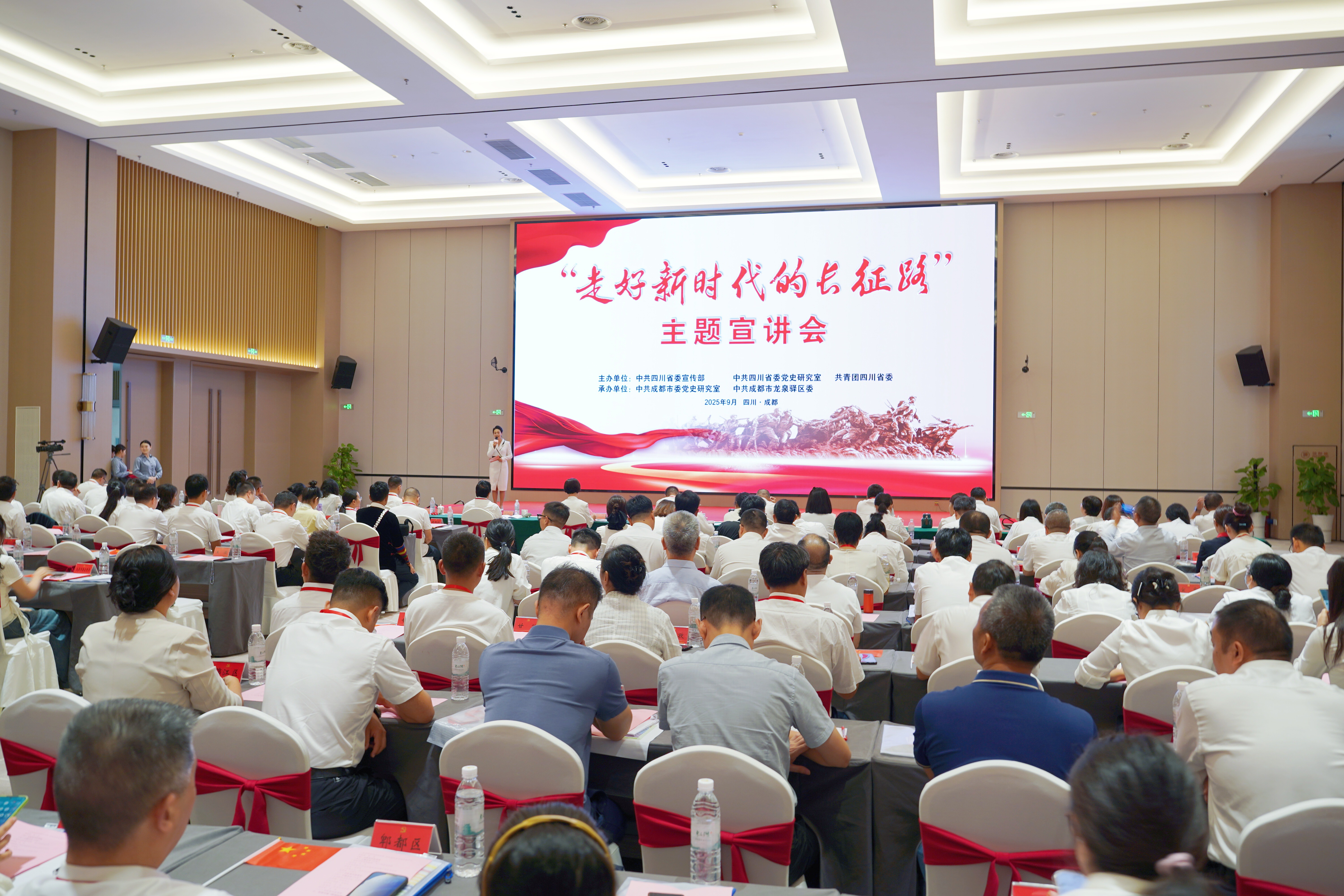 9月24日至25日,由省委宣传部、省委党史研究室、团省委主办,成都市委党史研究室、成都市龙泉驿区委承办的“走好新时代的长征路”主题宣讲会在成都举行。省直相关部门、省属企事业单位、各市(州)相关部门负责同志、团员青年代表等180余人参加宣讲活动。