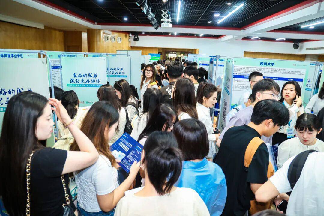 招聘会采取“线上+线下”同步方式,共组织62家在蓉重点企事业单位参与,提供240个优质岗位,招聘人数1700余人,最高年薪达70万,涵盖科研、医疗、教育、航空航天、智能制造等多个领域。现场气氛热烈,收到投递简历1000余份。