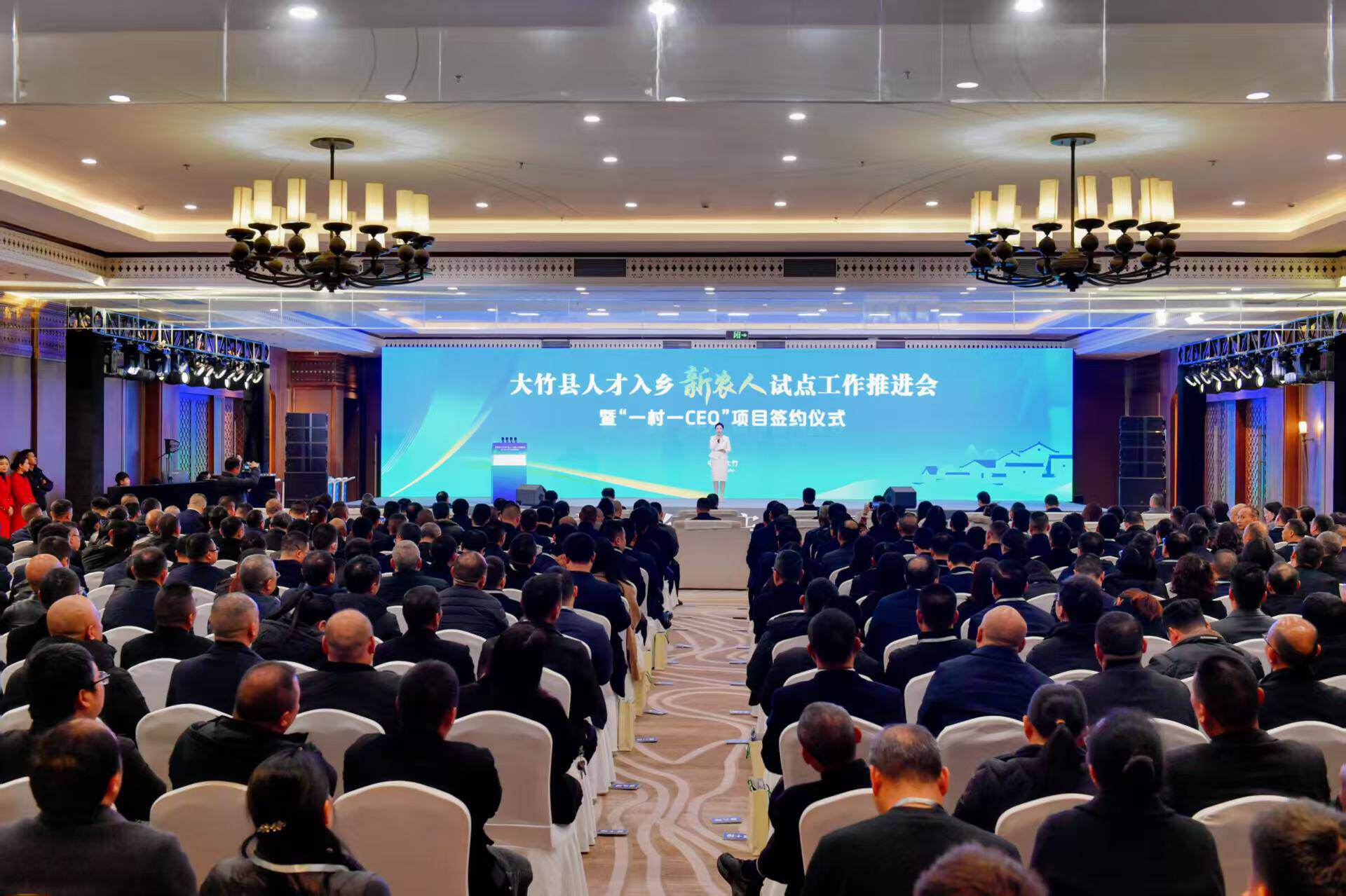 “推动乡村全面振兴,活力在新、重点在农、关键靠人。”12月3日,达州市大竹县人才入乡“新农人”试点工作推进会暨“一村一CEO”项目签约仪式举行。大会以人才振兴赋能乡村振兴为主线,通过现场观摩、经验交流与集中签约,集中展示全面试点以来的阶段性成果,并通过CEO项目签约推动人才与乡村发展深度融合。省、市相关部门领导,清华大学等高校代表,驻外流动党组织书记、企业家代表、乡村CEO等330余人参会。