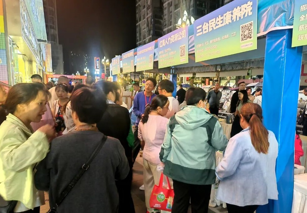 重点群体就业服务专场夜市招聘会在三台县城天平巷商业街广场举行