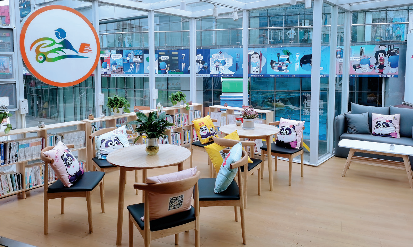 在成都市温江区,“温小爱”外卖送餐行业综合服务驿站为新就业群体提供阅读、休息、充电等服务。供图/温江区市场监管局