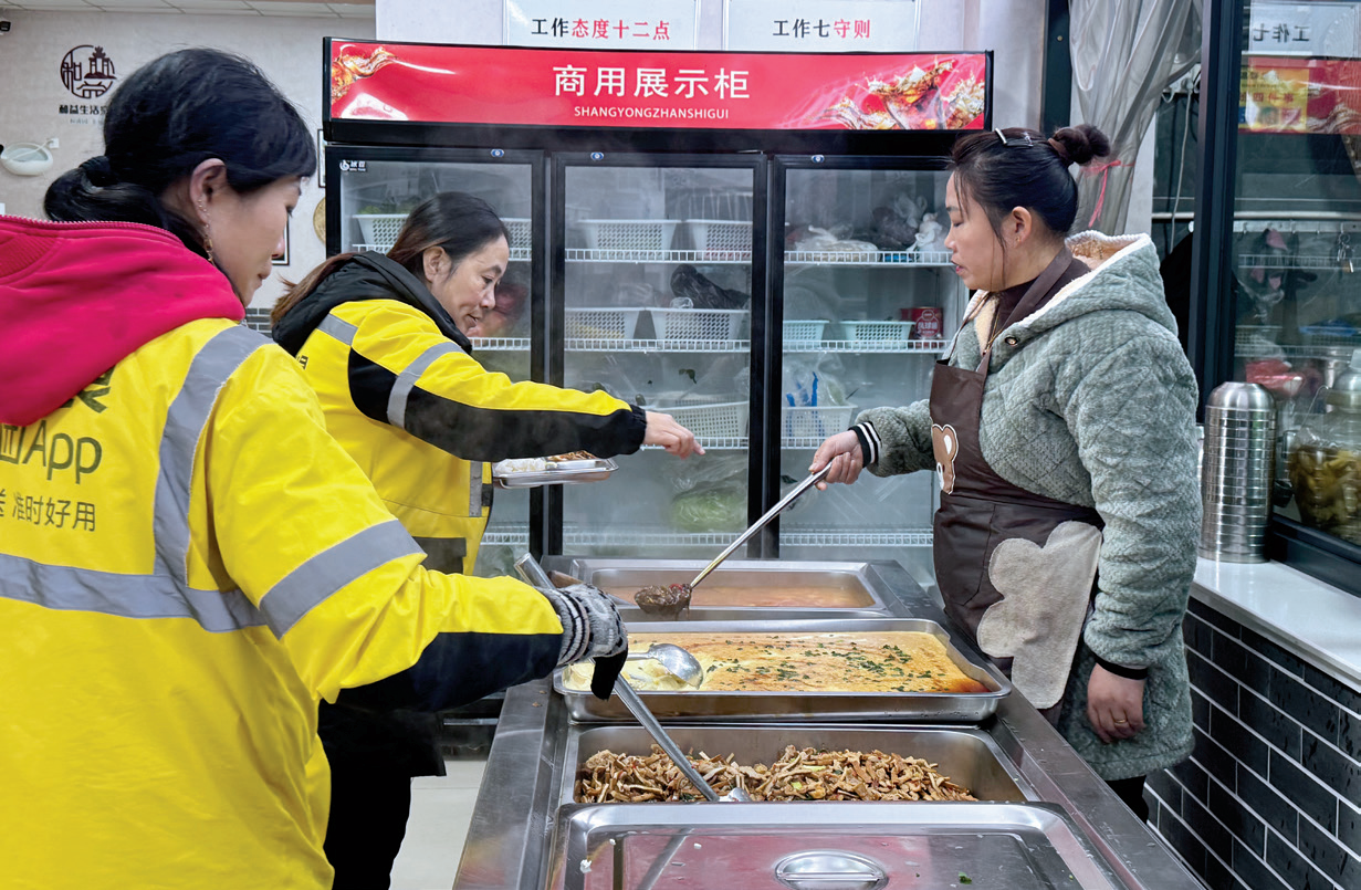 外卖骑手在泸县“泸小麒”暖心食堂用餐。供图/泸县妇女联合会