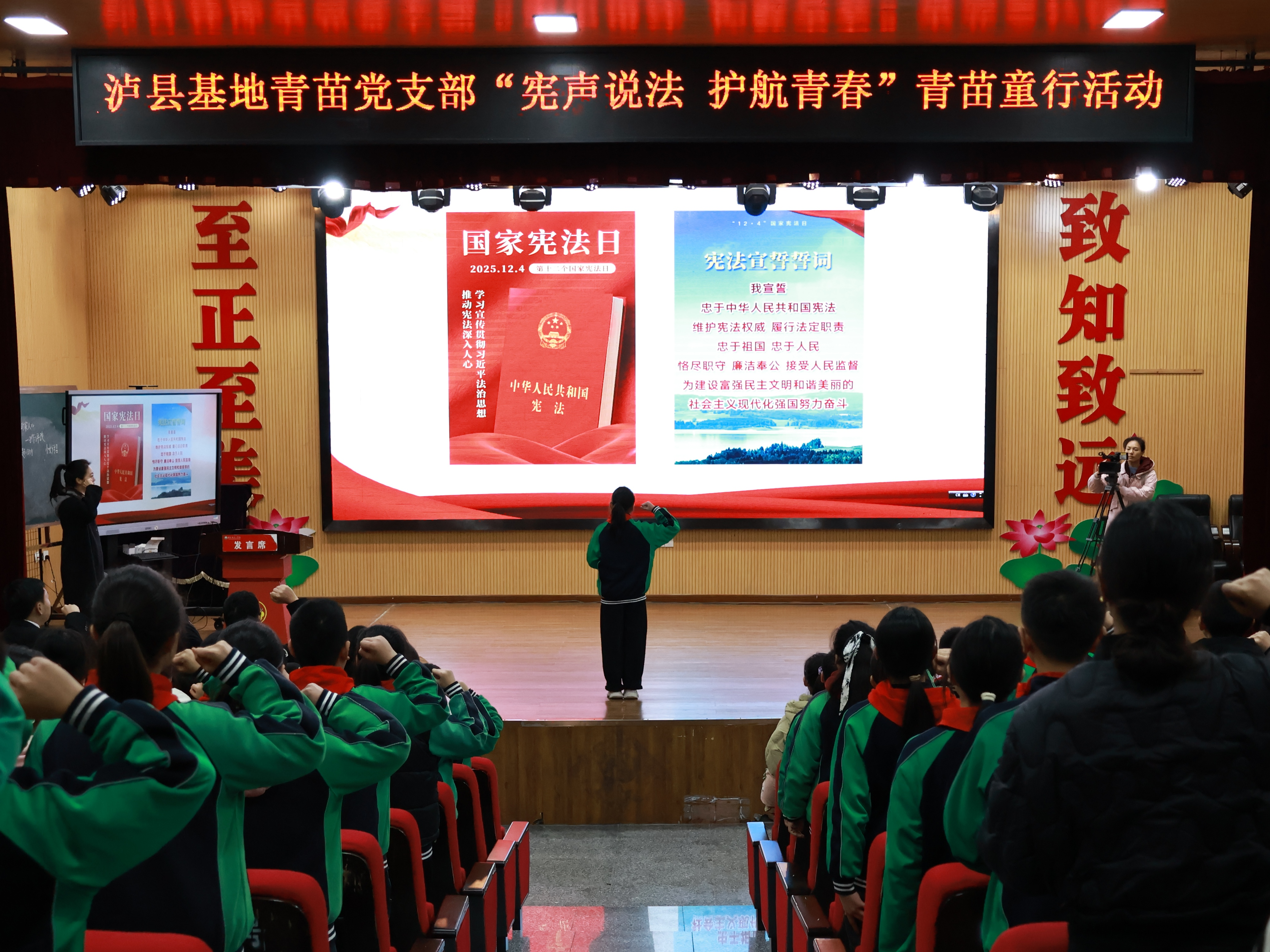 在泸县城东小学,一场模拟宪法宣誓活动正在进行。“我宣誓:忠于中华人民共和国宪法,维护宪法权威,履行法定职责,忠于祖国、忠于人民……”孩子们右手举拳,面向《中华人民共和国宪法》,庄严宣誓着。12月4日,时值我国第12个“国家宪法日”,四川省选调生实践锻炼泸县示范基地青苗党支部的选调生们走进泸县城东小学,以宪法为宣讲主题,为孩子们带来一堂生动深刻的宪法启蒙课。