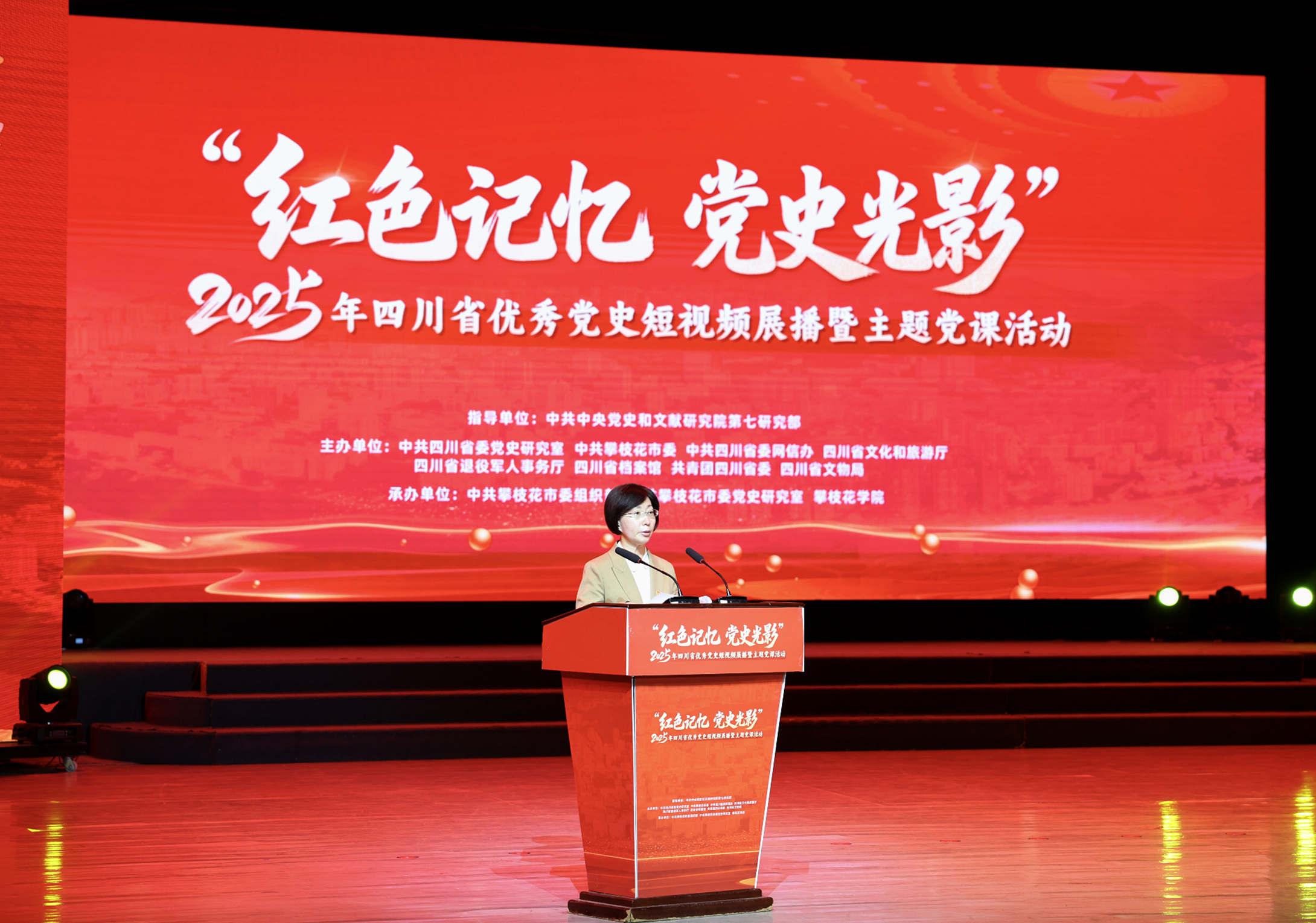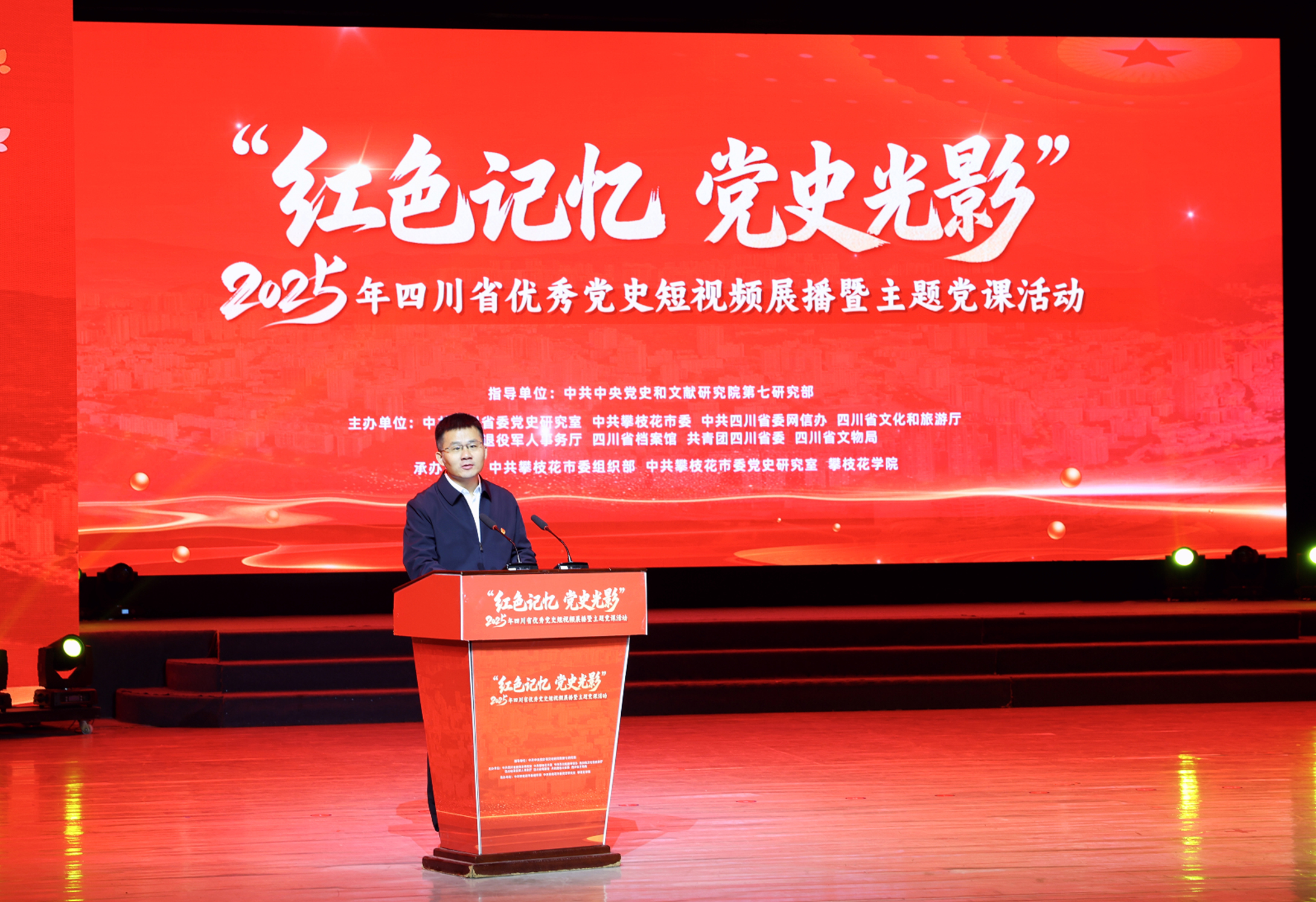 12月11日,由中央党史和文献研究院第七研究部指导,四川省委党史研究室联合省委网信办、省文化和旅游厅、退役军人事务厅、省档案馆、团省委、省文物局以及攀枝花市委共同主办的“红色记忆 党史光影”2025年四川省优秀短视频展播暨主题党课活动在攀枝花市举办。中央党史和文献研究院第七研究部副主任、一级巡视员毛胜,省委党史研究室主任荣凌,攀枝花市委书记吴群刚出席活动并致辞。