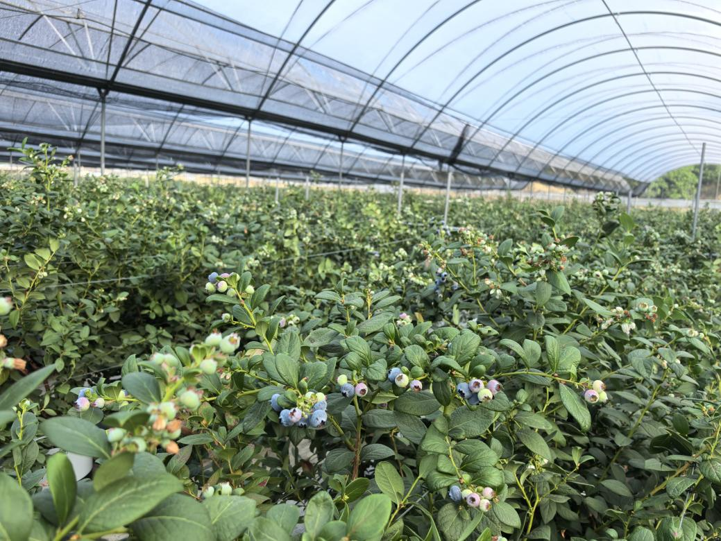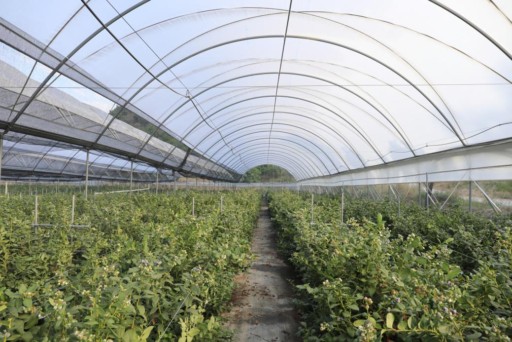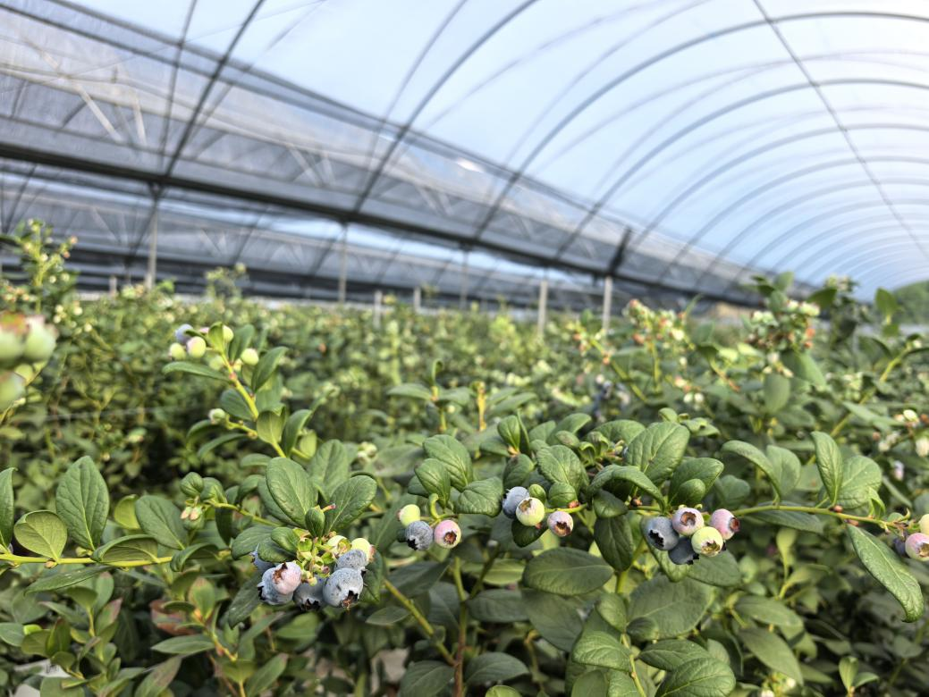 2024年5月,沙坝村通过覆土平整与基础设施提升工程,成功引进专业蓝莓种植企业。该生态园占地面积约70亩,规模化种植广受市场青睐的“花香”蓝莓。种植园全面采用无土基质栽培、滴灌及喷雾等现代化农业技术,并通过对温度、湿度、肥力等关键生长因子的智能化调控,有力保障蓝莓的产期稳定与高产优产。