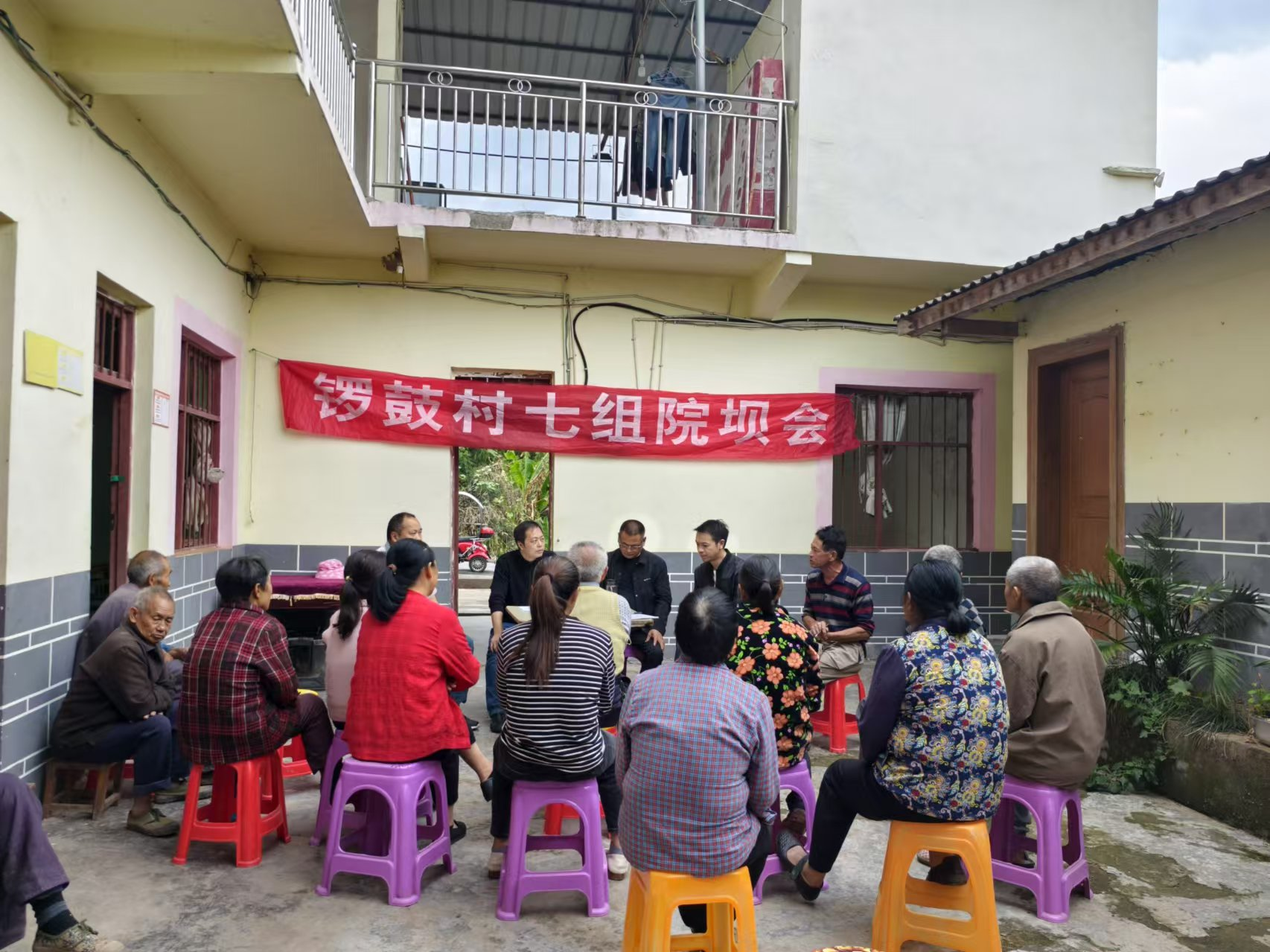 通川区碑庙镇锣鼓村驻村第一书记张聪和工作队员组织七组村民召开院坝会