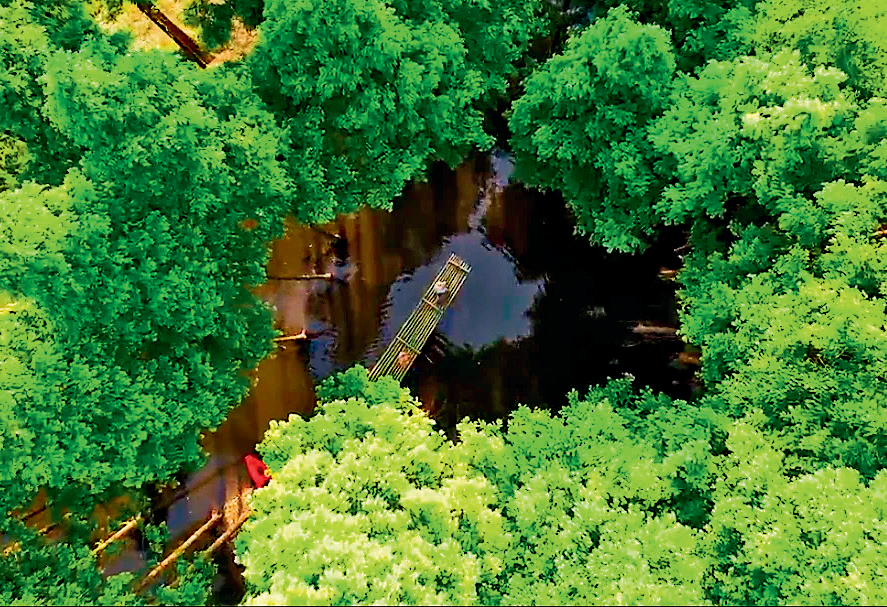 “4年前这里还是杂草丛生、垃圾遍地的‘烂河滩’。”熊娜指着眼前错落有致的帐篷、水杉林下的咖啡座和河滩边停靠的舢板船,“旺季一周能来上千人。我在家门口上班,月收入七八千元,比在外务工强不少。”