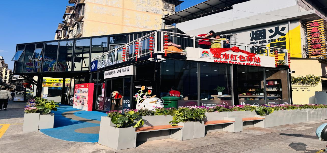 驿站面向快递员、外卖骑手、环卫工人等户外劳动者群体及全体社区居民开放,不仅提供免费充电、临时休息、饭菜加热、冷藏储物等基础服务,社区还常态化安排网格员驻点,为居民办理高龄年审、医保缴费指导、政策咨询、便民代办等事务,实现“休息、办事、休闲”一站搞定,成为辖区户外工作者和居民身边的“暖心站”。与此同时,驿站创新引入合伙人模式,吸引热心商家参与运营,在站内提供奶茶、咖啡等轻饮售卖服务,不仅丰富了驿站功能,也提升了阵地活力和可持续运营能力,让“红色驿站”成为一处有人气、有温度、有烟火气的城市温馨角落。