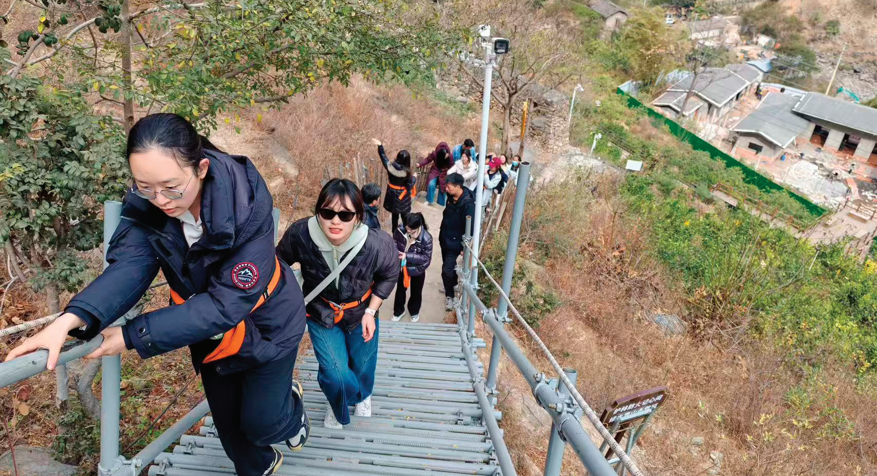 清华学子攀登悬崖村钢梯。供图/凉山州委组织部