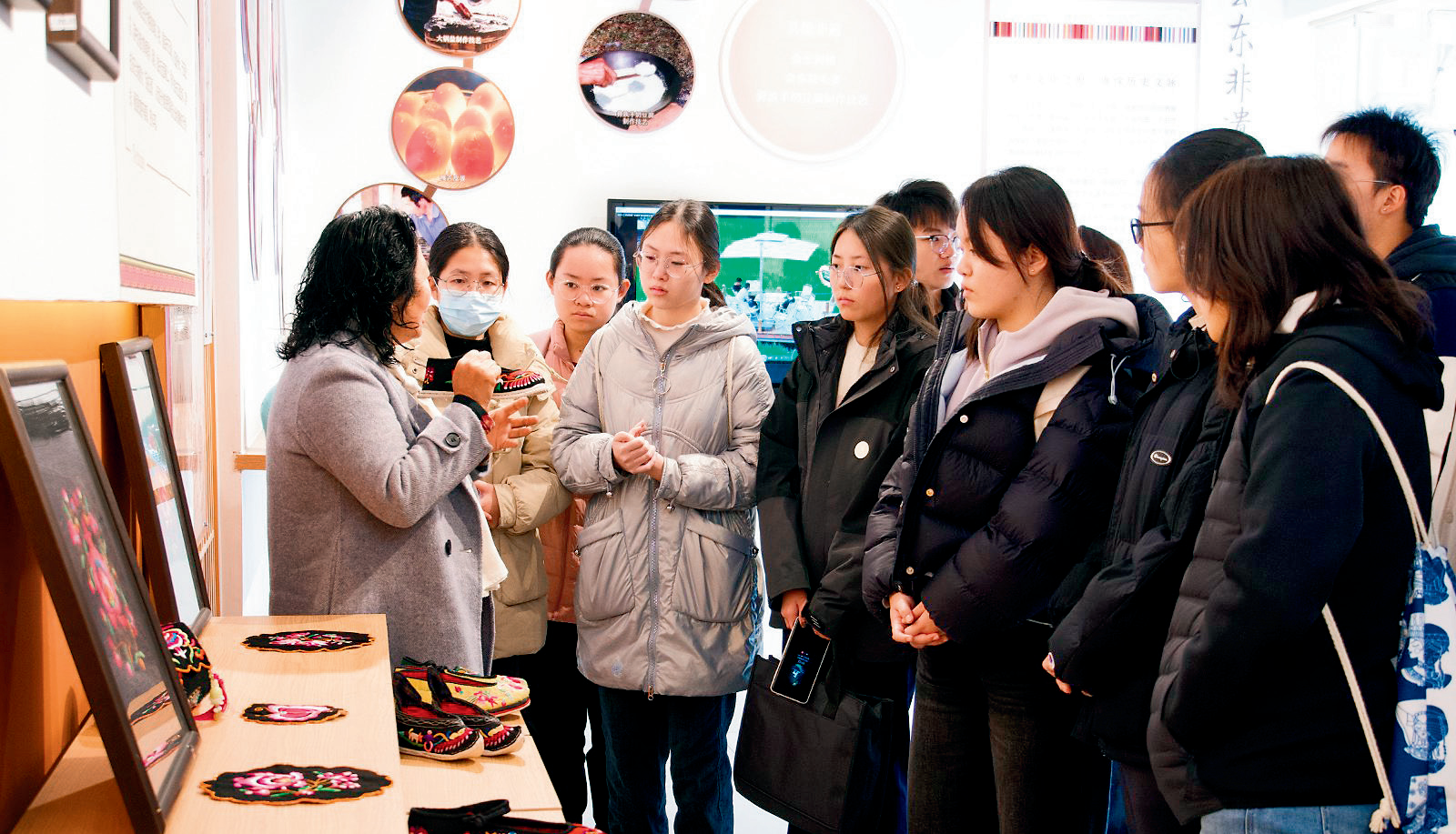 清华学子在会东县姜州镇了解非遗绣品制作过程。 供图/凉山州委组织部