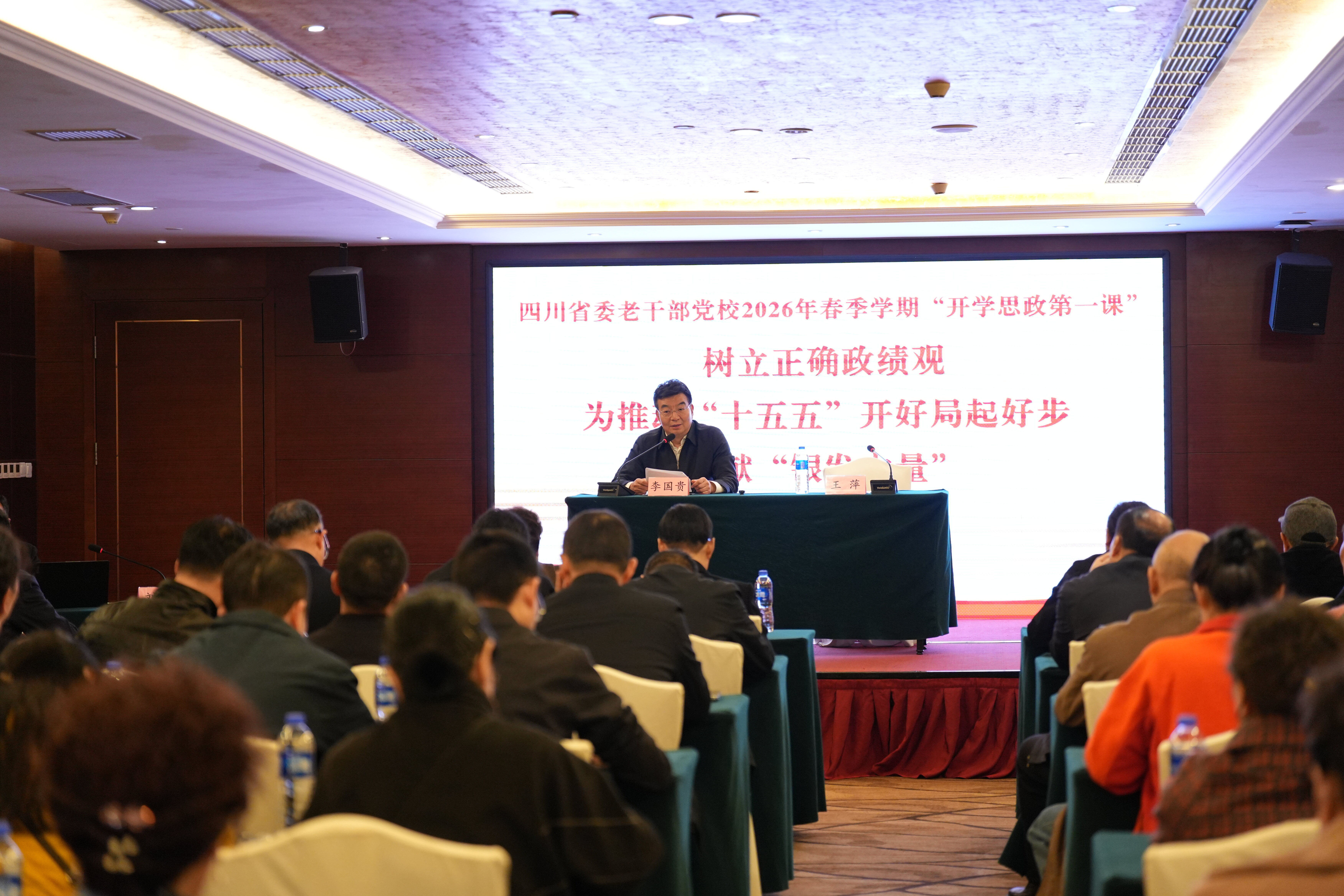 近日,四川省委老干部党校举办2026年春季学期“开学思政第一课”。省委组织部副部长、老干部局局长李国贵出席并讲话。省委老干部局局机关及直属单位党员干部、省老干部活动中心班队老干部及干部职工共160余人参加。