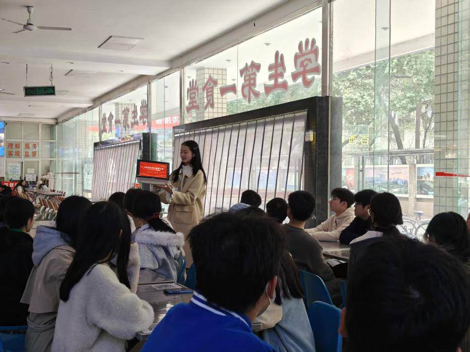 餐桌旁,思想学习的阵地不断延伸,理论学习也渐渐融入日常,为 “讲赛践炼” 打下扎实的思想基础。3 月 13 日,资源勘查 22 级学生段思语,在学校一食堂带领新生开展了一场主题学习活动。她用轻松亲切的交流方式,和新生们一同学习理论知识、交流心得体会,让理论学习走出课堂、贴近生活,引导大家传承红色基因、坚定理想信念,在日常中厚植担当、凝聚力量。