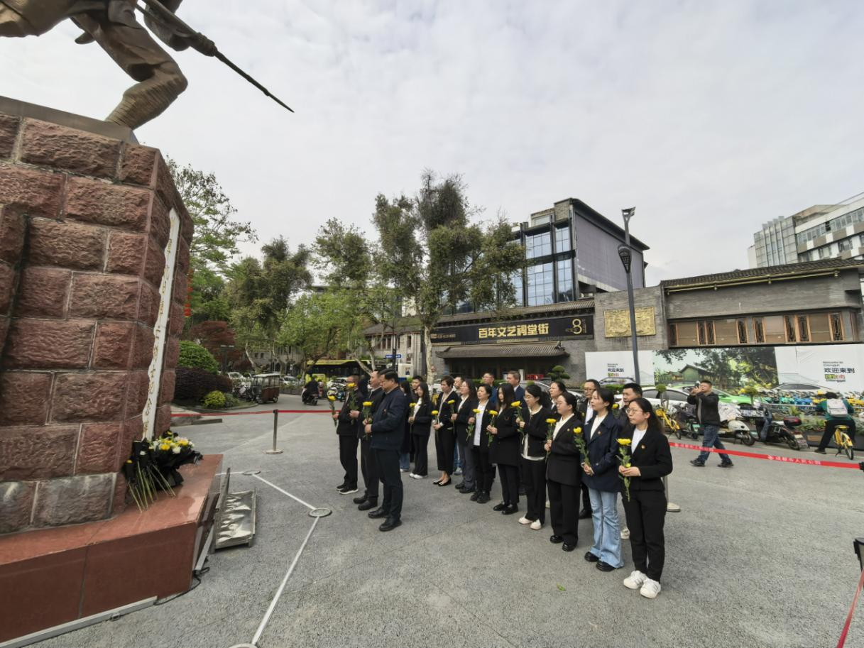 活动现场,全体党员整齐列队,向川军先烈致以崇高敬意,集体鞠躬缅怀先烈“出川抗战、义无反顾”的家国情怀与英勇壮举,大家手持鲜花依次敬献,以鲜花寄哀思、以行动表敬意,彰显传承英烈精神、勇担时代使命的坚定决心。