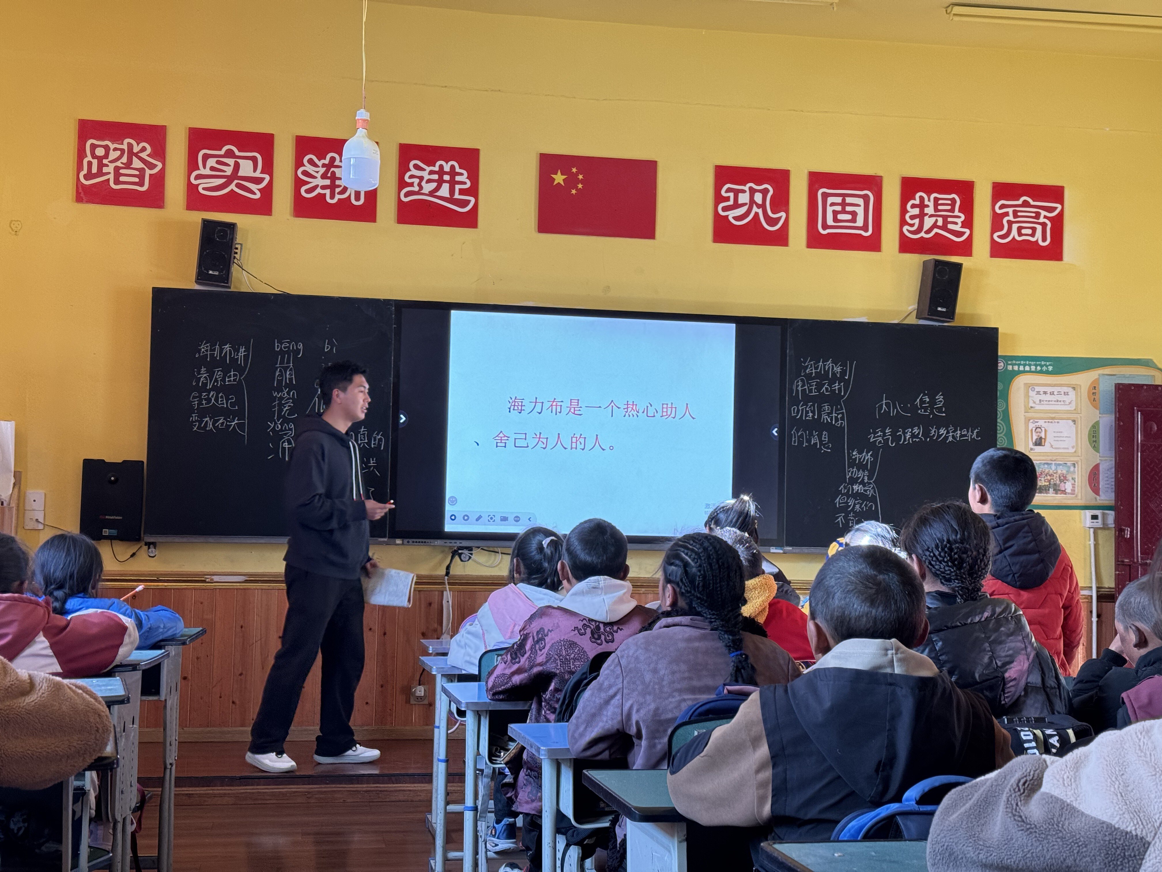 2017年,生态阳光教室投入使用,冬日的教室终于告别了冰封。2018年,教学楼、宿舍楼、塑胶操场完整呈现,曾经的夯土房变成了明亮的教室,曾经的泥地变成了整洁的操场……