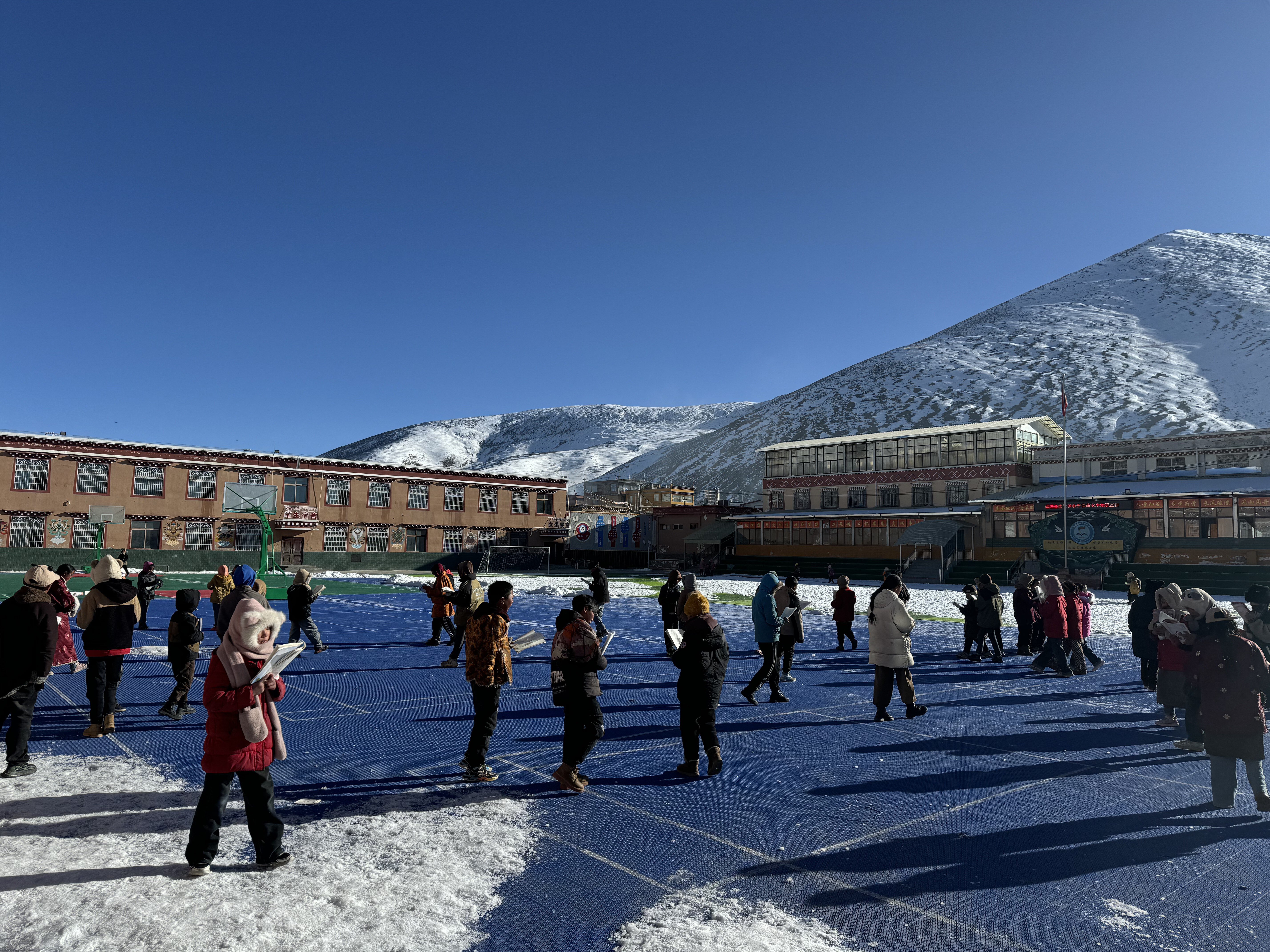 海拔4200多米,氧气稀薄,3月下旬还是冰天雪地,一年里的大半时间都在和风雪打交道。理塘县曲登乡小学就坐落在这个连呼吸都带着冰碴儿的地方。