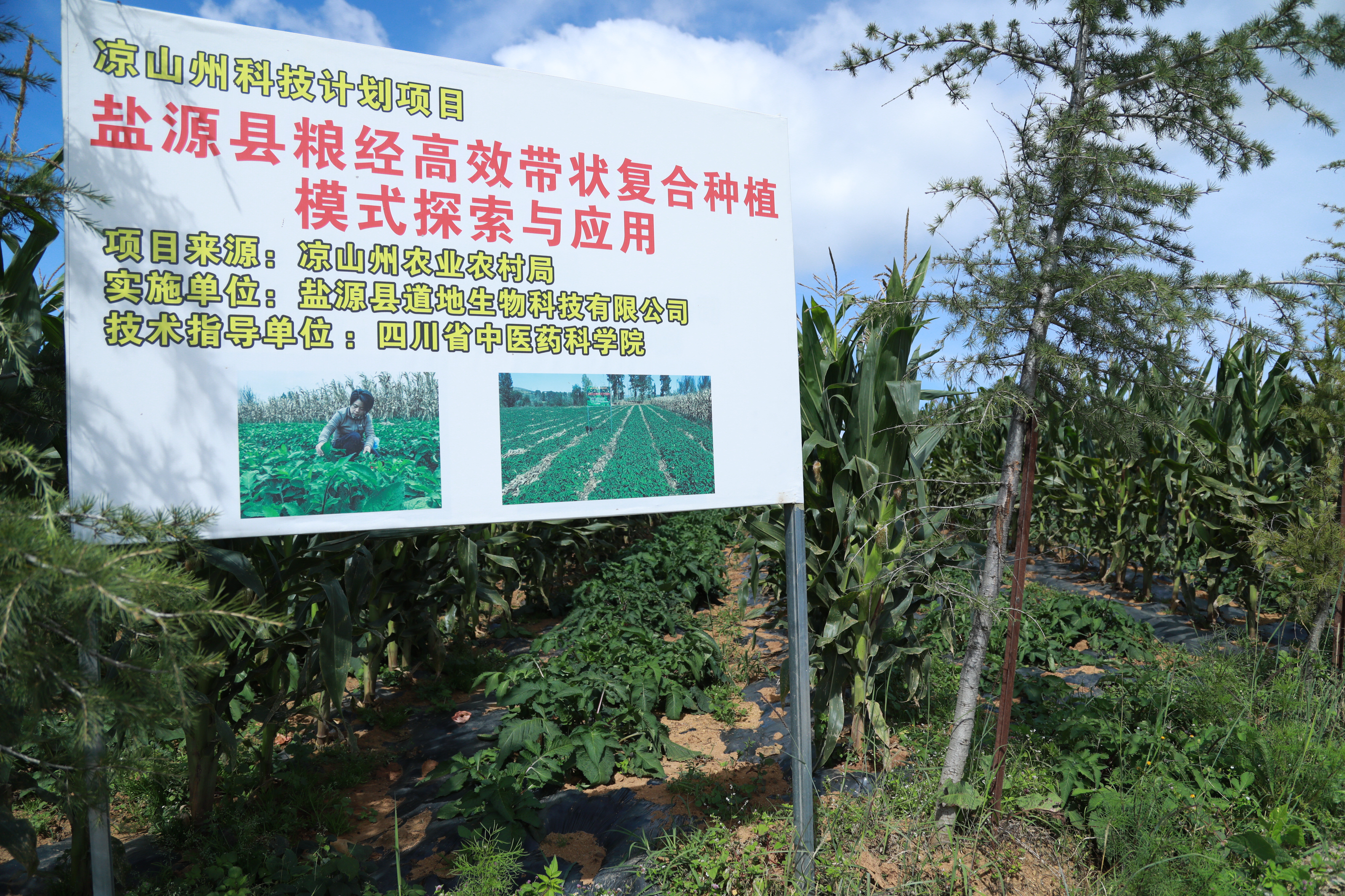 位于盐源县梅雨镇金山村中药材现代科技农业园区的粮经复合种植示范田。