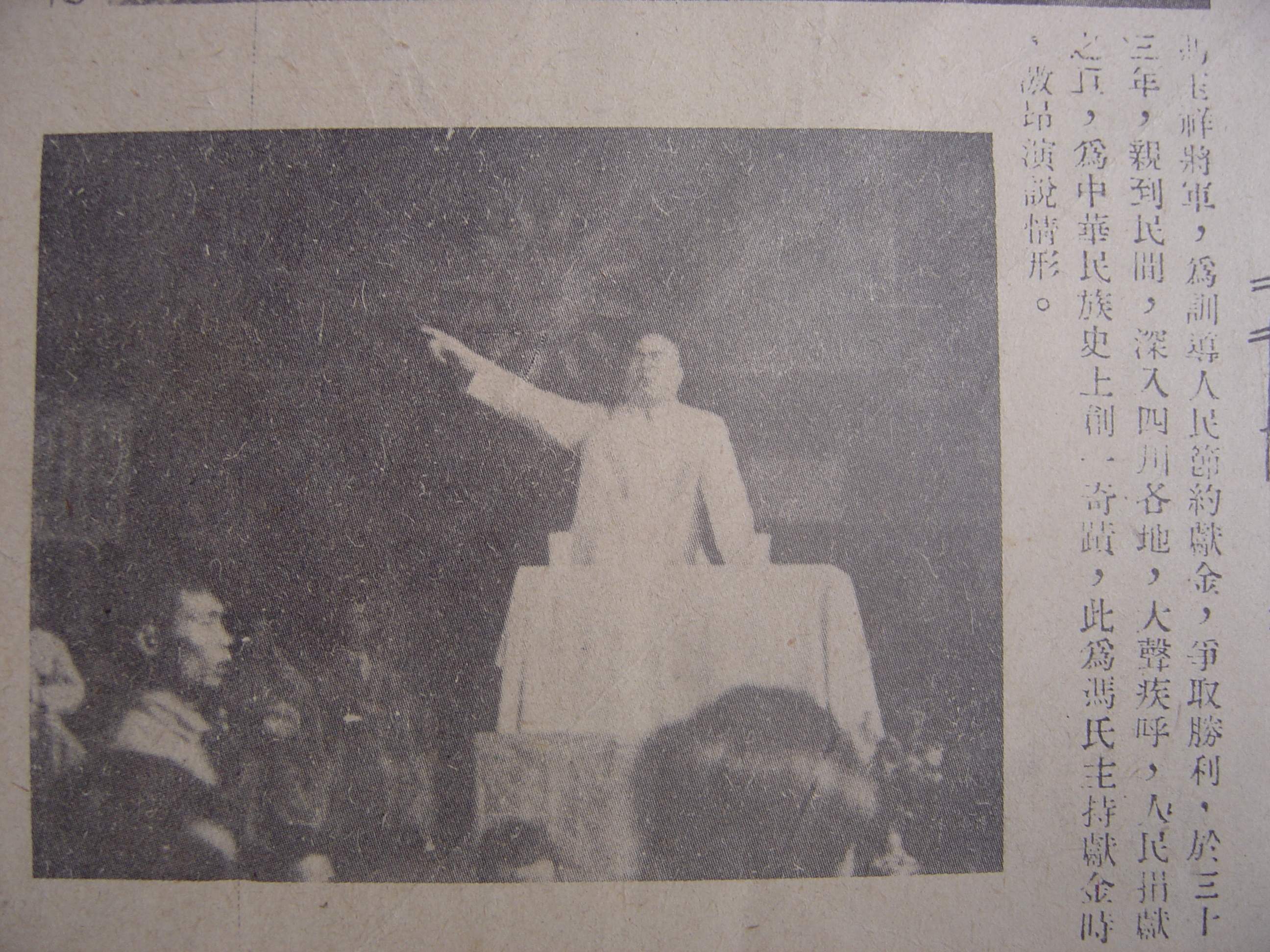 冯玉祥将军端起酒杯从座上站起来,慷慨说道:“君能以人饥己饥之心待乡人,盖不以弦高自视,救一国之急、救国士之心否?君不忍食鱼之死,盖能忍千万将士之浴血奋战而不为之输将乎?君能俭以积德,玉祥认为必能以民族为怀,为延续国脉民命而仗义也。”