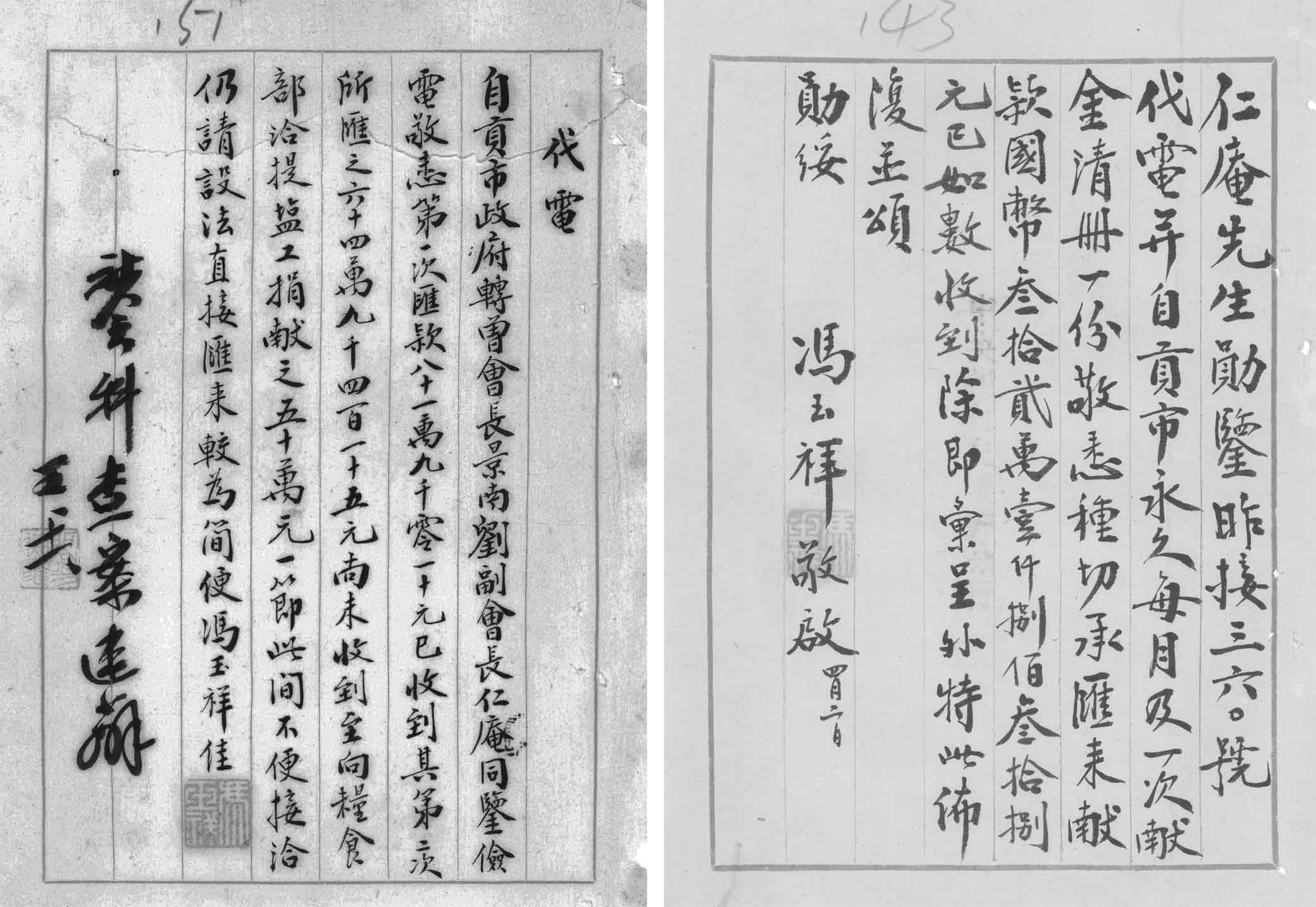 自贡人又极富爱国热情,1942年,自贡盐场职工就响应《新华日报》发出的“献机运动”倡议,捐款献出了“盐工号”和“盐船号”两架飞机,青年、学生捐款献出了“青年号”飞机一架。1943年第一次节约献金救国运动又捐出208万元。因此说,冯玉祥将军叫王德谦、余述怀这两位大盐商每人先捐出1000万元,是有经济基础和思想基础的。