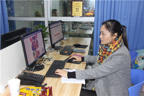 初见代翠英,是在她的办公室内。不大的房间,整齐地放着四张办公桌、四台电脑。还未开始交谈,代翠英先露出了爽朗的笑容。此时的她正忙于在阿里旺旺上跟客户交流。她告诉记者,这个客户是天津的一家供销社的工作人员,正在咨询能不能成为一名代理商。