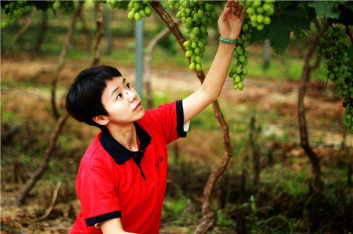 来到有机葡萄栽培区,工作人员正仔细地为一个个新芽涂上营养液。“点萌芽,是最重要的工作之一,萌芽点得好,今年的收成才好。”段丽丽引进了立体栽培模式、生物发酵等高科技种植技术,经她攻关培育的各项品质超平均水平20%的有机葡萄,在2014年创下了单日销售10万元的佳绩。