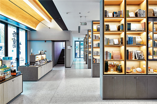 穿着工作服的王淼,正是其中一个“盒子屋”——“朵云书院·交子店”的工作人员。王淼负责书院的图书业务,她介绍:“书院以‘玻璃盒里的协奏曲’为设计基调,打造集图书、文创、餐饮、体验等多种功能为一体的文化消费目的地。”