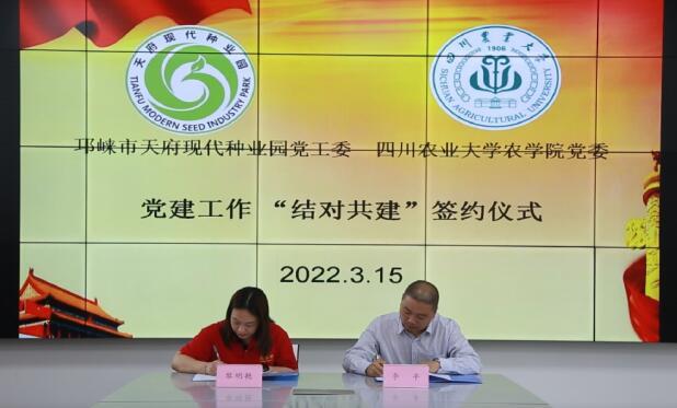 随后,四川农业大学农学院党委和天府现代种业园党工委分别对各自的党建工作开展情况作了详细介绍,就组织建设互促、党员干部互动、党建载体互用等内容达成结对共建共识,签订了党建结对共建协议。