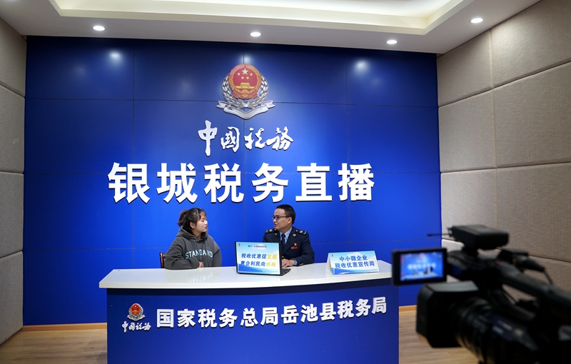 “观众朋友大家好,这里是银城税务直播间,未来一周我们将在直播间内为大家全面讲解2022年便民办税春风行动举措及新出台的组合式税费支持政策。此次直播我们还将新增在线访谈环节,诚邀各位纳税人、缴费人积极参与,与我们一同谈感受、话诉求!”一名税务青年干部在直播间镜头前高兴地说。