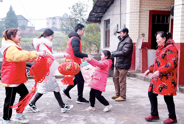 广安青年志愿者给老人和儿童送温暖。图/邱海鹰