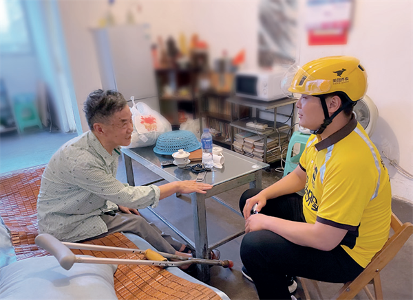 腿脚不便的独居老人袁大爷是“小牛哥”王柯皓的“爱心跑腿”结对对象。每月隔三岔五,王柯皓就要上门了解老人的身体状况,有时什么也不做,就陪着老人唠嗑,一来二去,两人竟成为无话不谈的“忘年交”。“平时自己一个人买菜做饭都不太方便,特别遇到下雨天,就更恼火了。”袁大爷说,“这种服务真的是解决了大问题,我为‘小牛哥’们点赞。”