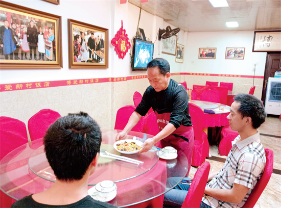 杨云刚为慕名而来的食客上菜。图 / 赵小霞