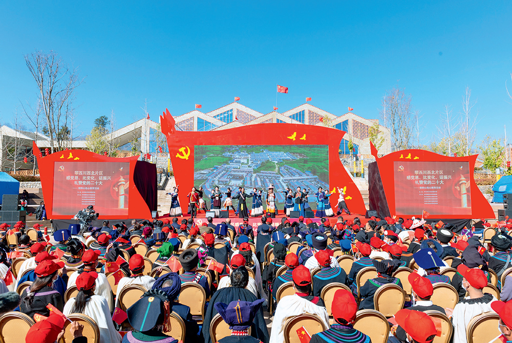 这是攀西川西北片区“感党恩、比变化、话振兴·礼赞党的二十大”党群心连心教育活动现场。来自攀枝花、雅 安、阿坝、甘孜、凉山五个市(州)的党员群众代表,用身边的点点滴滴向大家述说着各自家乡发生的动人故事。