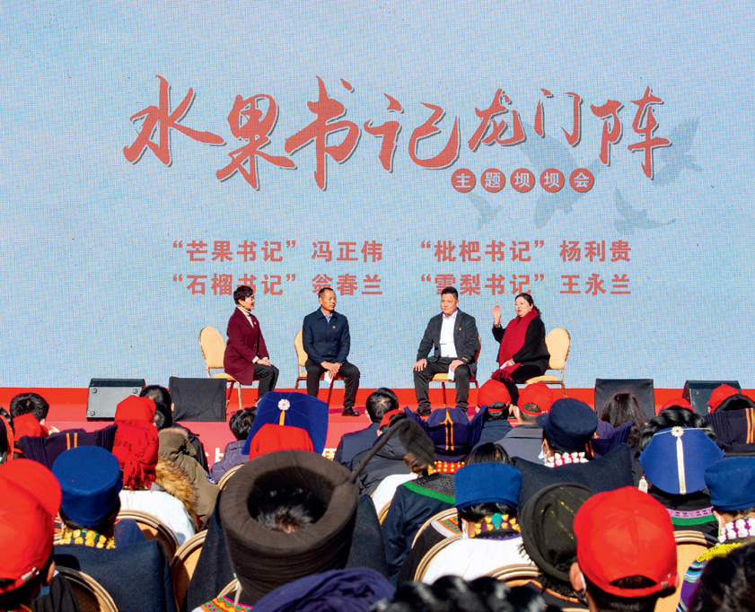 1 月 12 日,凉山州昭觉县沐恩邸社区广场的舞台上,昭觉县三河村、火普村的3 名干部群众重温着5 年前习近平总书记跟乡亲围坐在火塘边的一幕。