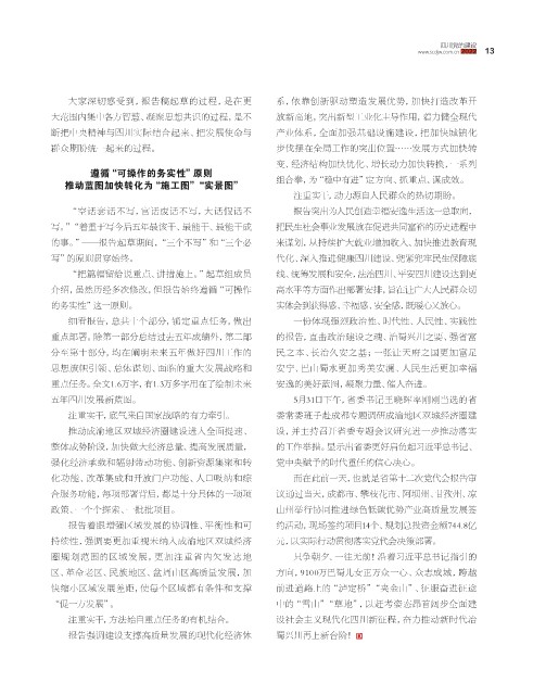 重点部署。除第一部分总结过去五年成绩外,第二部 的报告,直击政治建设之魂、治蜀兴川之要、强省富